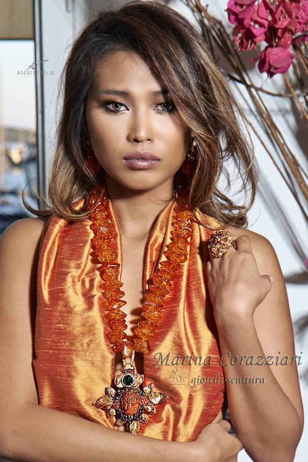 Jewels designer, scenografa vive e lavora tra Roma, Parigi e Trani. La sua prima collaborazione con la stilista Raffaella Curiel nel luglio scorso quando sfilano ad AltaRoma AltaModa per la prima volta i suoi preziosi monili, ispirati alla Russia. Ed ecco quindi un legame consolidato dove in questi bagliori d’oriente vedremo gli astratti simbolismi bizantini e le tessiture intreccio tipiche delle aree stilistiche della Thailandia e delle Filippine si fondono con elegante maestria nei suoi gioielli.