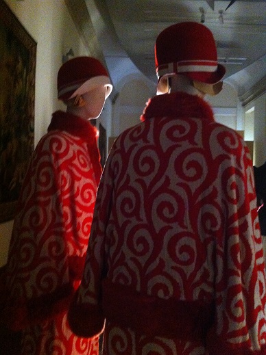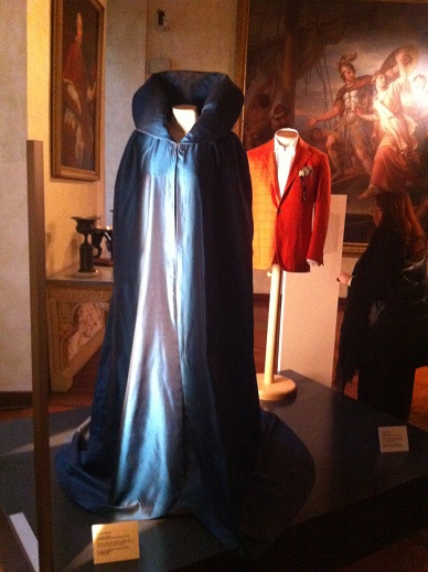 Ci accolgono proprio all’inizio della mostra Ramona e Jep Gambardella ovvero i protagonisti della Grande Bellezza (2013) di Paolo Sorrentino, per la precisione gli abiti creati da Daniela Ciancio: il mantello blu usato da Sabrina Ferilli nella passeggiate oniriche a Roma e la giacchetta rossa con pochette nel taschino di Toni Servillo.