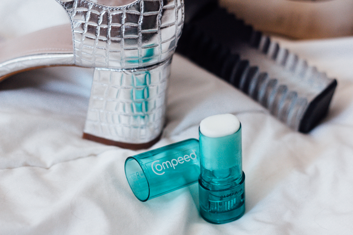A volte d’estate o dopo lunghe camminate i piedi possono gonfiarsi e le fettucce delle scarpe possono diventare fastidiose fino a creare abrasioni, Io ho scoperto il Compeed stick che vi consiglio di tenere in borsa al bisogno o prima di indossare sandali per la prima volta e se prevedete di passare molto tempo in piedi. Passate lo stick nelle zone a rischio ed eventualmente ripetere l’operazione. Vi garantisco piedi salvi!!