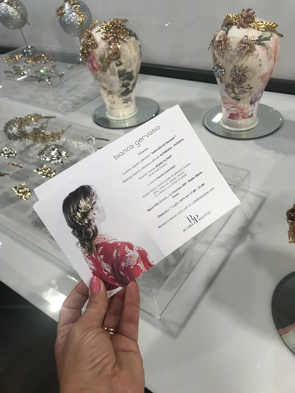 che ha presentato una collezione di mollette ed accessori per capelli e coroncine meravigliose molto in voga quest’anno! Bianca Gervasio dopo il diploma di Sarta e Tecnico d’abbigliamento e Moda, si laurea in Fashion Design all’Istituto Marangoni. Numerose esperienze lavorative importanti con atelier di Abiti da Sposa e da cerimonia Couture: Milano, Roma e Puglia. Collaborazioni in qualità di costumista per corto e lungometraggi, pièces ed eventi teatrali. Dal 2003 lavora come consulente presso l’Ufficio Design & Licenses di Mila Schön con l’incarico di sviluppare progetti per Mila Schön Japan. Da Ottobre 2013 a Febbraio 2016 Bianca è Direttore Creativo per il marchio: FRAGIACOMO 1956 accessori, calzature, borse e piccola pelletteria uomo, donna. Oggi Bianca è consulente senior designer per aziende di moda realizza capi ed accessori a marchio Bianca Gervasio nello specifico fermagli per capelli e abiti su misura per clienti private e per negozi, perché crede fortemente nel ritorno della sartoria e dell’artigianato.