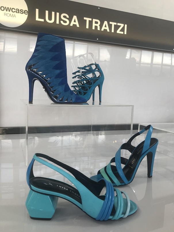 Di seguito le aziende selezionate secondo il mio gusto personale. Designer di cui già indosso le produzioni o di chi sto per farlo come per Luisa Tratzi le cui scarpe sono davvero un oggetto del desiderio. L’avevo conosciuta a Showcase lo scorso anno e sono stata tentata più volte all’acquisto in Coin Excelsior. Mi hanno colpito particolarmente gli accostamenti dei colori e le pelli utilizzate. I tacchi sono disponibili su un’ampia scelta per cui ognuno può trovare quello più adatto alla sua personalità ed esigenza. Fosse per me vivrei con sandali tacco 12 per tutto l’anno, ma la schiena spesso si lamenta e devo accontentarla anche con tacchi più modesti. Quelli proposti da Luisa sono delle piccole sculture di circa 5 cm bellissimi e comodi. S’ ispira all’architettura del Mediterraneo riproponendo le forme cilindriche delle colonne e per i colori alla Costiera Amalfitana. La cosa straordinaria che esistono talmente tante varianti nella produzione che difficilmente si può rimanere scontenti e dire che io sono parecchio esigente in materia! Luisa ha studiato moda a Milano e orgogliosa mi comunica che la produzione è completamente italiana ed inoltre che è possibile effettuare delle personalizzazioni sui modelli proposti per un evento particolare o anche solo per uno “sfizio”. Come si fa a non amarla?