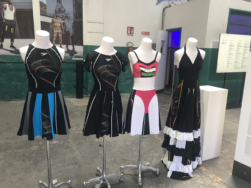 Prima tappa: esposizione “The Shape of Water: Reinvenzione, sostenibilità e trend migrante” – A.I. Artisanal Intellingence. Assolutamente attuale, coinvolgente. Abbraccia i temi dei migranti, ma anche della sostenibilità, conservazione e salvaguardia ambientale, temi verso i quali proprio la moda che rappresenta il secondo settore al mondo responsabile dell’inquinamento deve essere più sensibile. “The Shape of Water” rimanda all’acqua come elemento di trasformazione e metamorfosi con la reinvenzione e ri-attualizzazione di materiali di scarto. Il tema della migrazione è affrontato con il progetto “B&W Black & White la tendenza migrante” che nasce con l’intenzione di dar voce al popolo migrante, con l’obiettivo di trattare i temi migratori come un’opportunità ed uno spunto di crescita ed arricchimento personale, a partire dall’osservazione del modo di vestire creativo ed unico del popolo migrante, stile che ha la capacità di raccontare la storia del mondo. Iniziativa interessante nell’ambito della sostenibilità è quella proposta da Daniele Biscontini, fondatore di “Emersum,” inventore di un’app che permette di analizzare come poter intervenire al fine di limitare l’impatto ambientale durante la realizzazione di un capo. Importante sottolineare anche la collaborazione con Speedo per recuperare i costumi scartati: ad accoglierci appena entrati nello spazio espositivo, infatti, ci sono proprio i classici costumi Speedo, che ci incuriosiscono e ci spingono ad approfondire la tematica. Noi giovani dobbiamo sostenere queste iniziative visto che negli anni precedenti si sono creati molti danni ai quali ora è necessario mettere un freno! Un’esposizione dunque che tratta di temi socialmente rilevanti, legandoli indissolubilmente al mondo del fashion: la moda, infatti, è sempre rappresentazione della cultura nella quale si sviluppa, ne è espressione ma anche motore di cambiamento.
