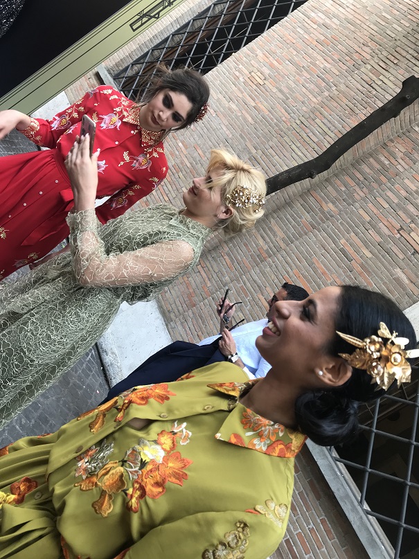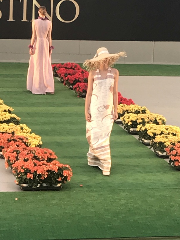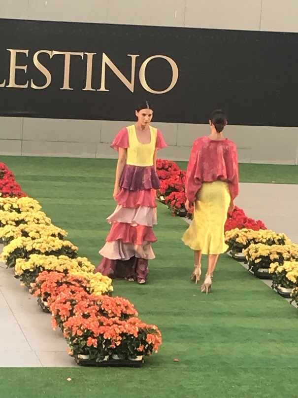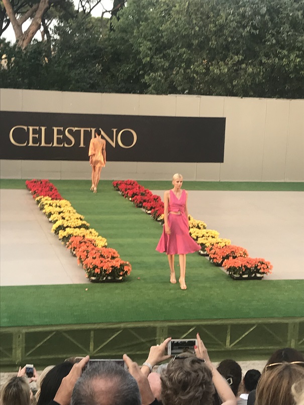 Da lì attraversare tutto il Lungotevere per dirigerci sull’Aventino è stata una mezza impresa, ma abbiamo raggiunto la favolosa destinazione : l’Accademia Nazionale di Danza. Un anfiteatro accoglie l’eleganza e la sensualità della Maison Celestino sui colori del tramonto. Questa visione poetica su Roma antica chiude la rassegna ufficiale di Altaroma 2019. Oltre 30 capi da cocktail e grande soirée, con rituale chiusura con abito da sposa, ispirati al tramonto sulle capitali del mondo, unici per qualità dei tessuti e lavorazione sartoriale, compongono una collezione sofisticata dalle linee fluide e ariose con pannelli cromatici intrisi di luce solare. Aperto dall’elegante momento di danza curato dalla coreografa Brunella Visau e le danzatrici, con la direzione artistica di Giovanni Scura, il fashion show si è mosso intensamente su registri leggeri tingendosi delle cromie della ‘golden hour’ riflessi sulla collezione firmata dalla designer Flavia Pulignano. Suggestive le acconciature realizzate dalla hair stylist Mariassunta Acri e dal suo staff, al pari del make-up curato dall’Accademia di Ida Montanari, con la supervisione di Enzo Piscopo.