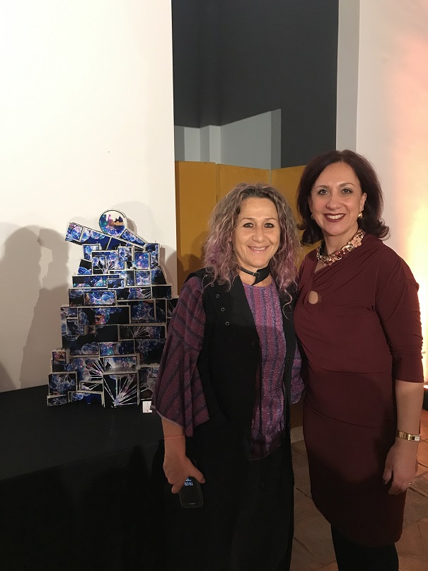 Durante la serata ho particolarmente apprezzato l’artista Daniela Bellofiore che ha spiegato come è stata realizzata l’opera partendo da semplici scatole di prodotti di supermercato che hanno subito particolari trattamenti.