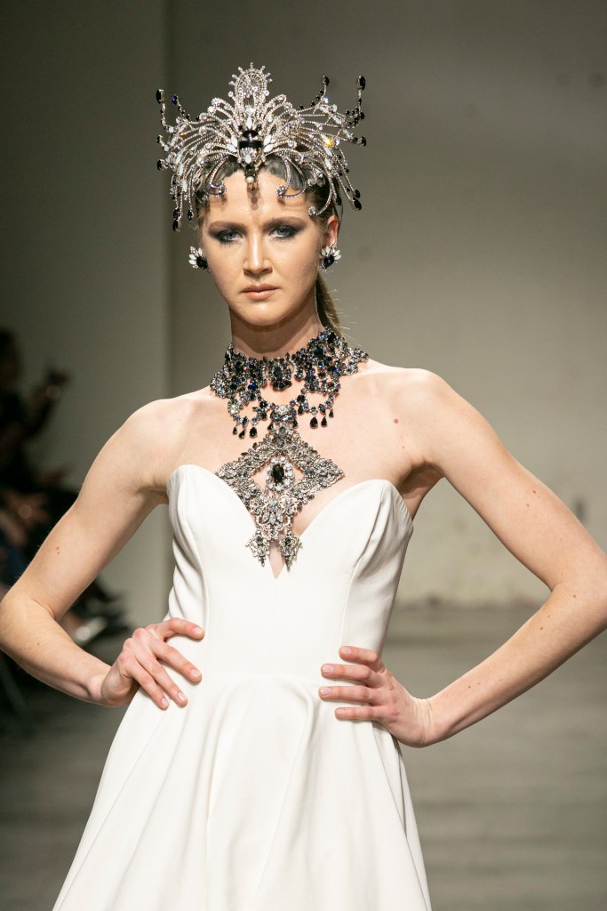 I Gioielli celestiali della collezione di Baroqco “Stairways to Heaven” elevano l’anima della donna che li indossa. Dieci parure principesche sfilano insieme agli abiti neo-couture di Natasha Pavluchenko che conferiscono un’aura moderna e disinvolta a corone e gioielli scultorei. Una bellezza pura emerge da gioielli unici, fatti a mano e realizzati appositamente per sfilare sulla catwalk di ALTAROMA. La collezione “Stairways to Heaven” è stata creata ispirandosi all’idea di come essere più vicini a Dio, grazie alla purezza dell’Anima che permette di elevarsi rispetto al mondo irrequieto in cui viviamo. L’anima vicino a Dio è pura e bella. Realizzata in metalli pregiati placcati in oro 24 carati, abbinando decorazioni e abbellimenti con l’applicazione di SWAROVKSI ELEMENTS © e di pietre semi preziose che provengono dall’Indonesia e dal Brasile.