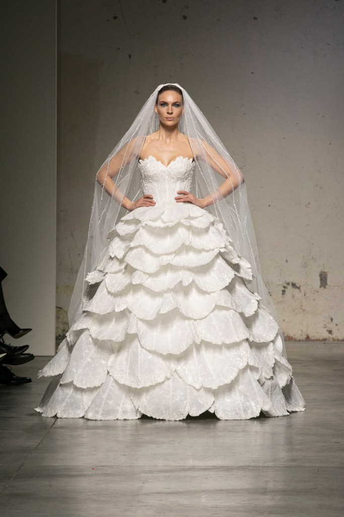 Il finale mi ha particolarmente coinvolto con la “Vieira” di Marcela de Cala, ispirata ai miti e alle storie della famosa Vieira di Santiago de Compostela. Si racconta che la Vieira fosse una metafora per aiutare le persone a trovare la giusta strada da seguire. Marcela de Cala presenta una collezione di 20 abiti da sposa spudoratamente femminili. Perfetti per coloro che vogliono brillare nel giorno più importante della propria vita senza rinunciare all’eleganza, capi lavori caratterizzati da perline, paillettes e inserti di ogni tipo che uniti ai tulle e ai pizzi creano un effetto luminoso da sogno. La collezione “Vieira” simboleggia l’inizio di un bellissimo viaggio che approda sulla passerella di ALTAROMA. “Vieira” è ricca di sfumature, di ricami bianchi intrecciati e di stratificazione ingegnose selvaggiamente romantiche che cercano di catturare l’essenza della storia nascosta dietro il guscio. La forma della conchiglia ha giocato un ruolo importante donando volume agli abiti e ostentando una silhouette dai raffinati ornamenti di conchiglie e di perle.