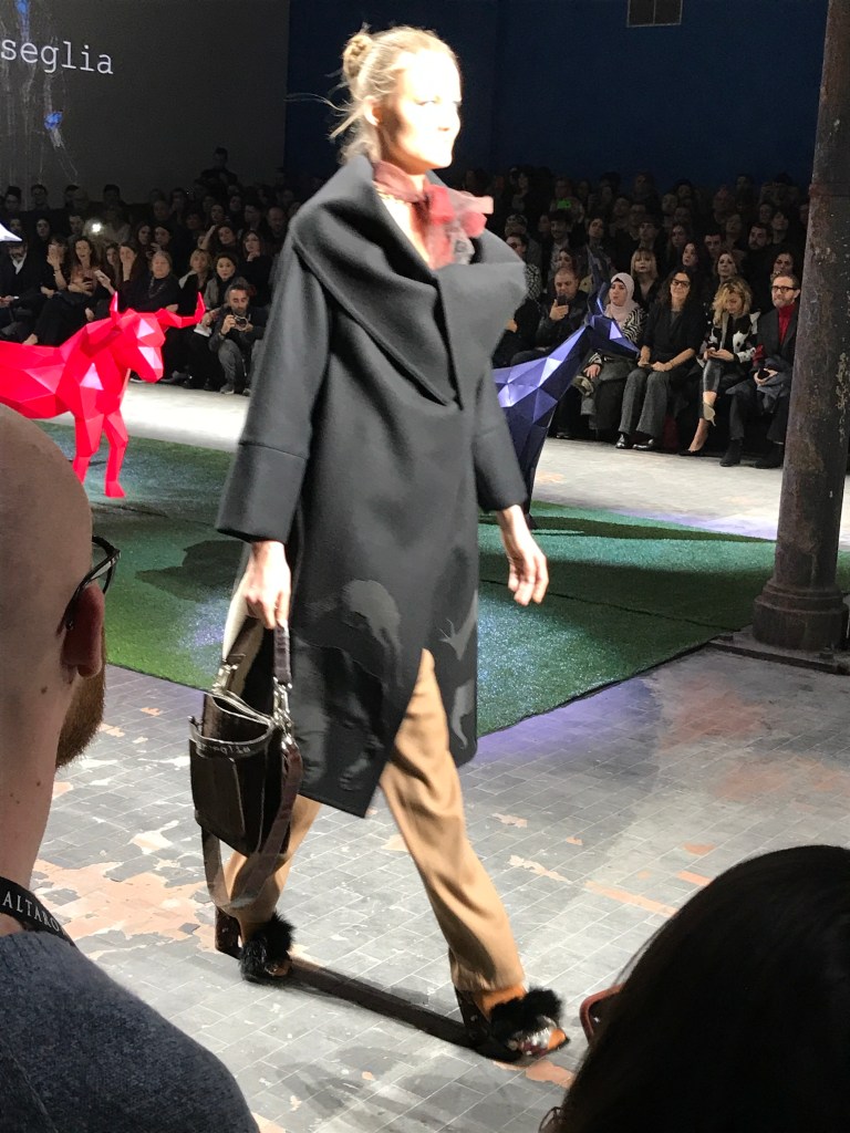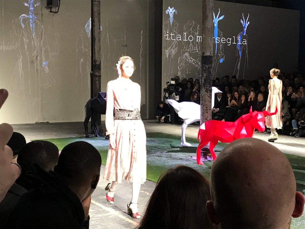 Sulla passerella, dove ha scelto di sfilare anche la bellissima Fiona May accompagnata da cinque giovani atleti della Nazionale Italiana di Scherma, in un’atmosfera wild popolata da Folding Pets – eco animali fantastici in low poly creati dal designer Pellegrino Cucciniello.