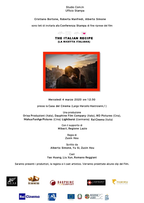 Una sala stampa che vede presenti autori, sceneggiatori, registi ed i protagonisti della commedia romantica The Italian Recipe (la ricetta italiana) : (una sorta di vacanze romane al contrario dove l’amore trionfa lontano da casa e dopo momenti di insofferenza reciproca) e pochi giornalisti coraggiosi ad affrontare la possibilità di contagio da coronavirus a districarsi in modo informale tra italiano, inglese e cinese!