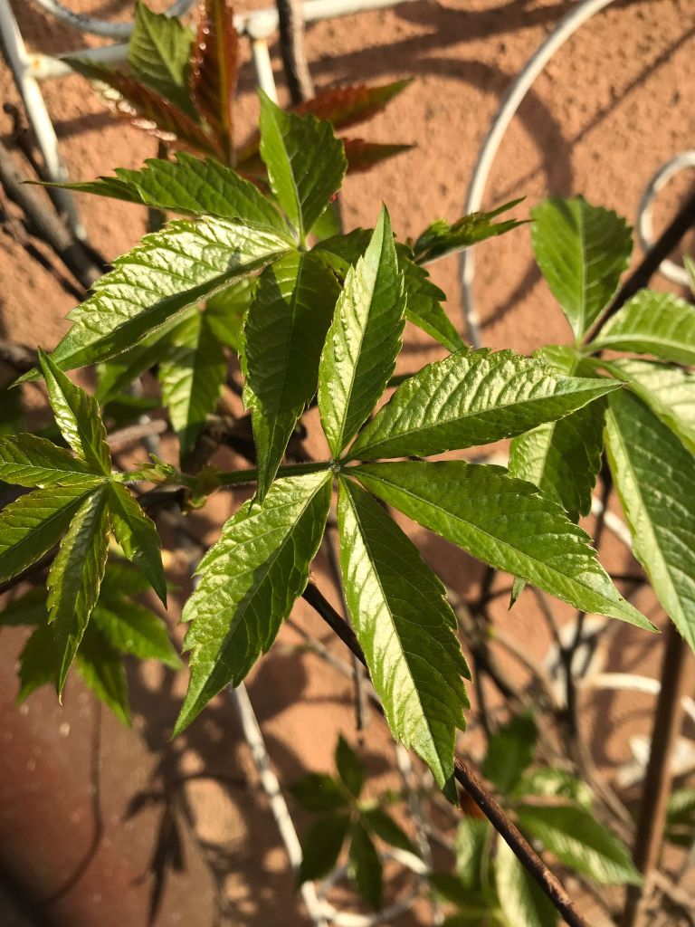 Vi ho messo le foto di due foglie per visualizzare che la Vite canadese (Ampelopsis brevipedunculata) ha foglie che crescono a gruppi di tre sullo stesso picciolo, mentre la Vite americana (Parthenocissus quinquefolia) di foglie ne ha cinque. (vedi la foto di copertina)