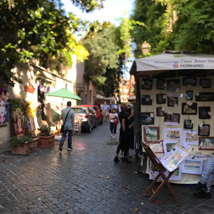 La tradizionale mostra di Via Margutta è nata nel lontano autunno del 1953, per iniziativa spontanea di alcuni pittori che nell’immediato dopoguerra si riunirono e decisero di dar vita e colore ad una strada che da sempre era stata il rifugio naturale di pittori, scultori, poeti, musicisti ed artigiani.