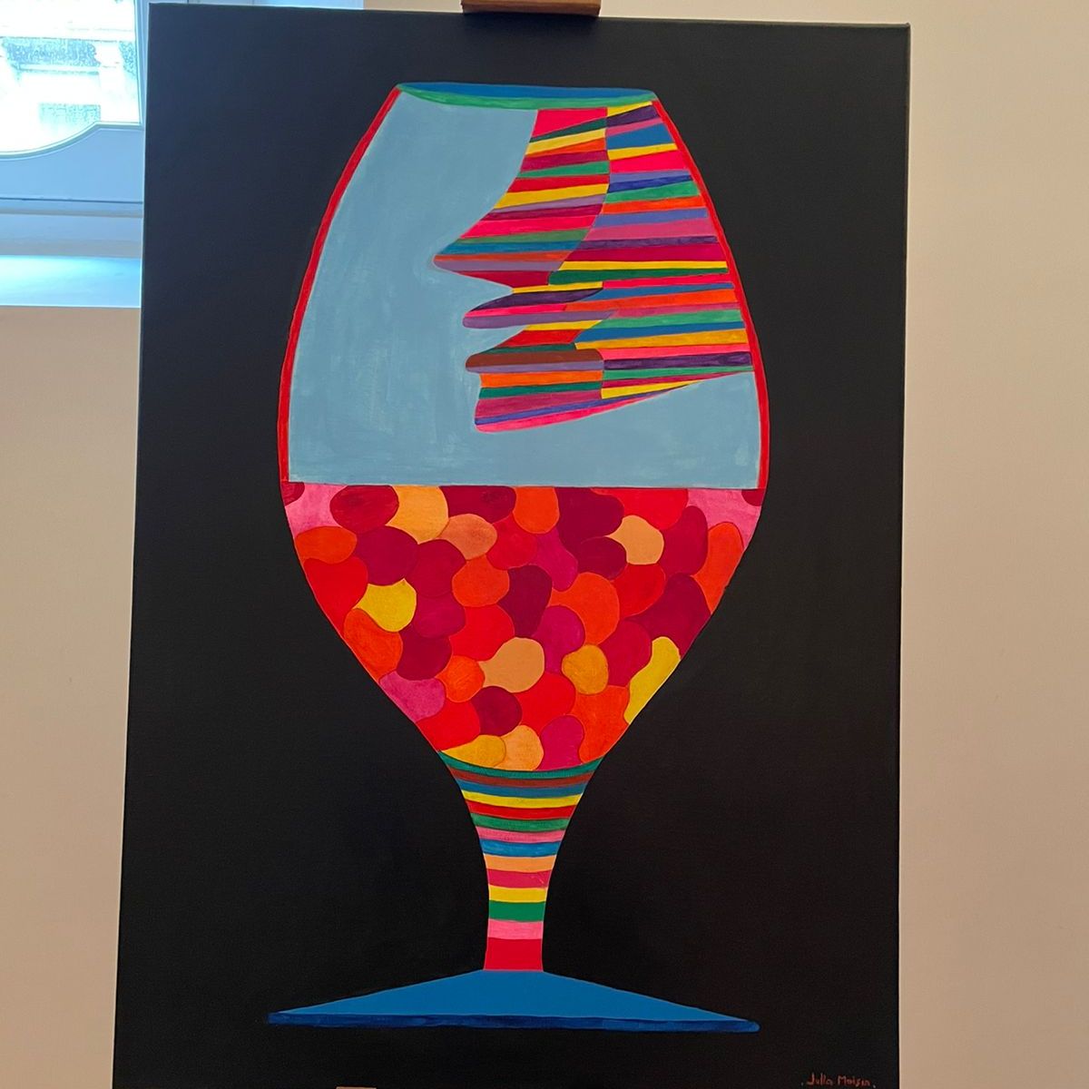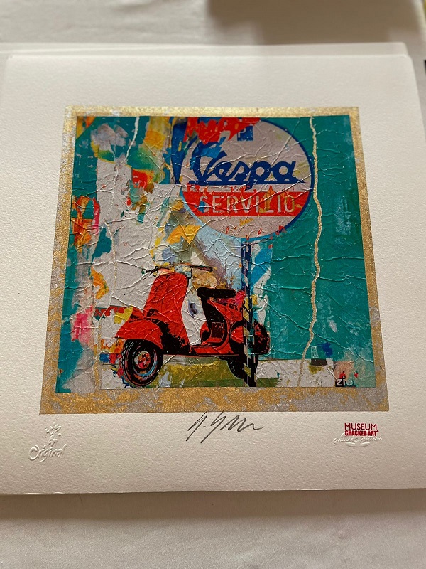 Protagonista Giuliano Grittini, rinomato fotografo ed artista italiano, che nel corso della sua lunga carriera ha avuto modo di collaborare con personaggi dal calibro di Andy Warhol e Alda Merini. La sua tecnica pittorica è stata definita “cracker art”, una sorta di collage che presuppone la scomposizione dell’immagine e la successiva ricomposizione con elementi polimaterici di testo e colore che ho molto apprezzato e ha colpito subito la mia attenzione appena arrivata!