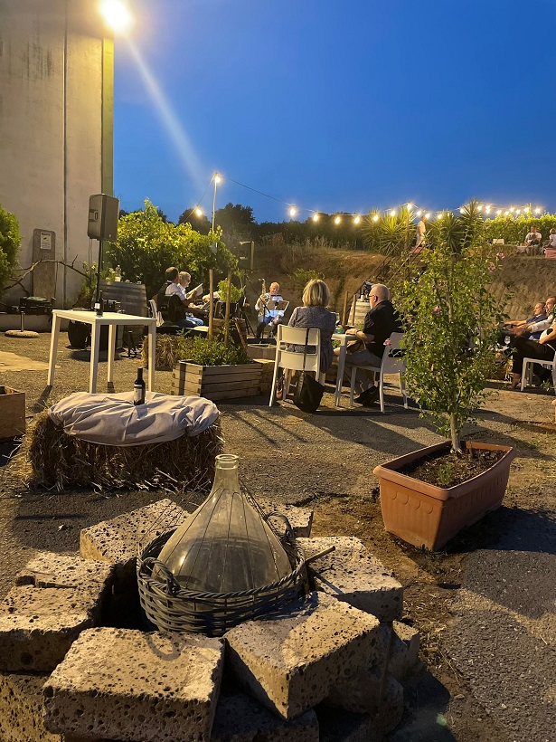 Il tutto con la musica offerta dai “Freshwater Jazz Players”, un quintetto garbato e frizzante che si muove sul suggestivo crinale tra il genere manouche e lo swing oltre ad alcuni ri-arrangiamenti di classici del repertorio internazionale che ci hanno fatto respirare aria di normalità (alcun ospiti hanno anche accennato alcuni passi di danza sull’aia!) La band è composta da: Fabrizio Formicone al clarinetto, Max Straccini al sax tenore, Giuseppe Marini alla chitarra, Giovanni Moschetta alla chitarra, Walter Gnisci al basso acustico.
