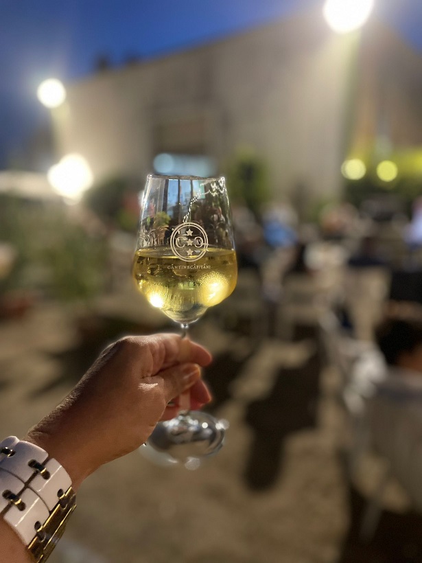 Uno scenario da film. Di quelli belli con l’aria nostalgica. Ambientata in una vigna in Borgogna o in un’altra qualsiasi regione della Francia produttrice di vini. Luci tra i grappoli ancora acerbi, balle di fieno che fanno da seduta e tavoli improvvisati da antiche botti. Mettici poi una serata estiva, le cicale ed una musica di sottofondo. Eppure tutto ciò è stata realtà ieri sera presso Le Cantine Capitani a Trevignano dove si sono riuniti una sessantina di ospiti nel rispetto del distanziamento e delle normative anticovid in vigore.