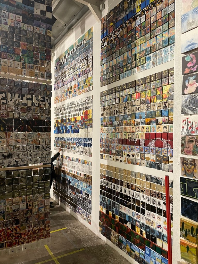 Ad un certo punto non sai più dove guardare: l’impatto è davvero forte. Si ha la sensazione di essere parte dell’opera. Infatti è come una sorta di immensa installazione che ti avvolge tra i colori ed i messaggi. Unica pecca: sono un pò svantaggiate le opere poste in alto poichè non visibili! Provengono da tante parti del mondo ed oltre mille artisti le hanno inviate in un periodo di pandemia con tante difficoltà anche doganali.