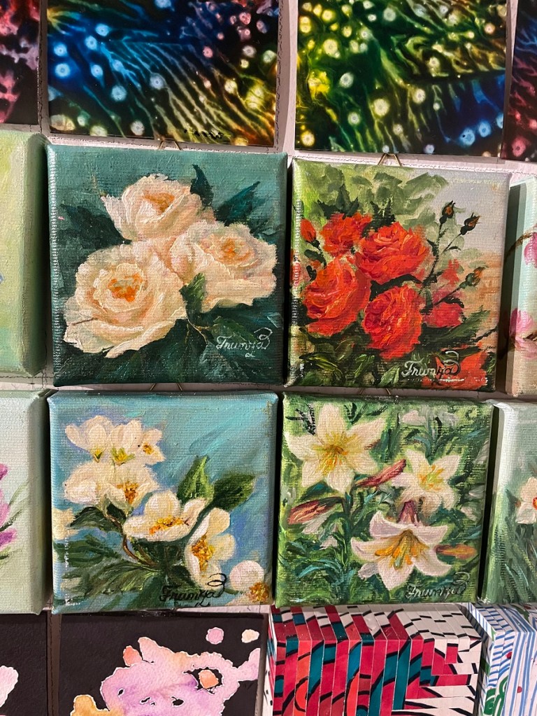 Tanti i soggetti, dai ritratti ai paesaggi, agli animali, scritte motivazionali ed esortazioni a rispettare l’ambiente. Infinite le tecniche : dal collage, all’acquerello, acrilico, inserti in lana ed anche materiale riciclato, fotografia, carboncino, matita….