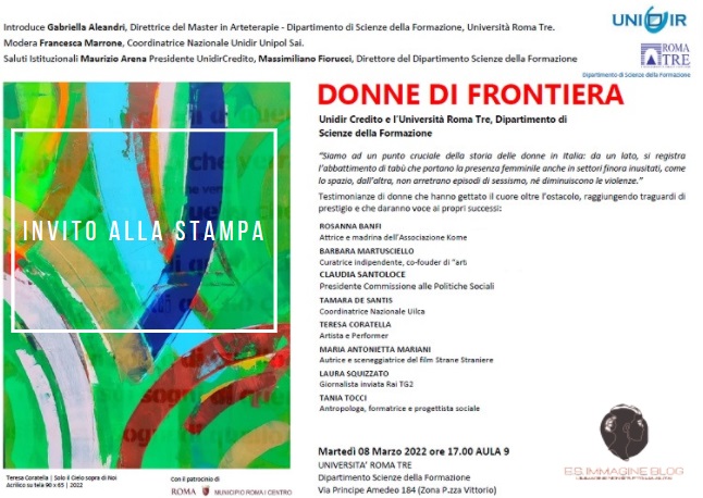 In occasione della “Giornata Internazionale della Donna”, UnidirCredito, che rappresenta e tutela gli interessi e le attese dei lavoratori del comparto del credito, della finanza e delle attività collaterali, nella persona di Tamara De Santis, Coordinatrice Nazionale Uilca – Dipartimento Alte Professionalità, intende promuovere un’iniziativa composita volta a celebrare il talento femminile. “Siamo ad un punto cruciale della storia delle donne in Italia: da un lato, si registra l’abbattimento di tabù che portano la presenza femminile anche in settori finora inusitati, come lo spazio, dall’altra, non arretrano episodi di sessismo persino nelle sedi istituzionali più prestigiose, né diminuiscono le violenze alle donne, dalle molestie allo stalking fino ad arrivare alla somma ignominia del femminicidio.” L’evento si aprirà con un convegno dal titolo “Donne di Frontiera”, una narrazione di donne appartenenti a diverse culture e classi sociali: imprenditrici, artiste, scrittrici, personalità del mondo della politica e sindacale, un’agorà dove condividere esperienze al femminile vissute all’interno del proprio contesto socioculturale e professionale. Storie di donne che lottano ogni giorno in battaglie pubbliche e private in una zona che purtroppo è spesso di confine e si fatica a travalicare. L’iniziativa coadiuvata dall’Università Roma Tre – Dipartimento di Scienze della Formazione – con la Prof.ssa Gabriella Aleandri, Direttrice del Master in Arteterapia, intende sviluppare un percorso altamente evocativo, che non ricalchi itinerari già tracciati ma testimoni l’impegno massimo per il raggiungimento di reali pari opportunità, così come è intendimento dell’azione sindacale. La cerimonia inaugurale è prevista presso la sala centrale del Dipartimento di Scienze della Formazione – Università Roma Tre, via Principe Amedeo 184, dalle ore 17.00 alle 19.00, dove converranno alcune donne molto speciali, donne che hanno gettato il cuore oltre l’ostacolo, raggiungendo traguardi di prestigio e che daranno voce ai propri successi: Rosanna Banfi, Attrice e madrina dell’Associazione Komen Italia Barbara Martusciello, Critica d’Arte, Curatrice indipendente, co-fouder di “artapartofcult(ure)” Teresa Coratella, Artista e performer Tamara De Santis, Coordinatrice Nazionale Uilca Dipartimento Alte Professionalità Maria Antonietta Mariani, Autrice e sceneggiatrice del film Strane Straniere Claudia Santoloce, Presidente della Commissione alle Politiche Sociali Tania Tocci, antropologa, counselor formatrice e progettista sociale Laura Squizzato, Giornalista inviata Rai TG2 Introduzione, Gabriella Aleandri, Direttrice del Master in Arteterapia – Università Roma Tre e Moderatrice Francesca Marrone, Coordinamento Unidi Saluti Istituzionali Maurizio Arena Presidente UnidirCredito, Massimiliano Fiorucci, Direttore del Dipartimento Scienze della Formazione.
