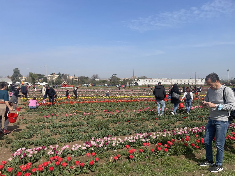 C’è l’imbarazzo della scelta: 75 specie diverse tra cui scegliere: rosa, rossi, bianchi, gialli, bicolore, sfrangiati! Decidere i 7 fortunati tulipani (che erano compresi nel mio biglietto d’ingresso) da portare con me a casa non è stato facile. Malgrado le indicazioni non sono riuscita a raccogliere tutti i miei tulipani con il bulbo che viene donato al Comune di Roma per allietare i giardini pubblici! Dovrò fare pratica!!