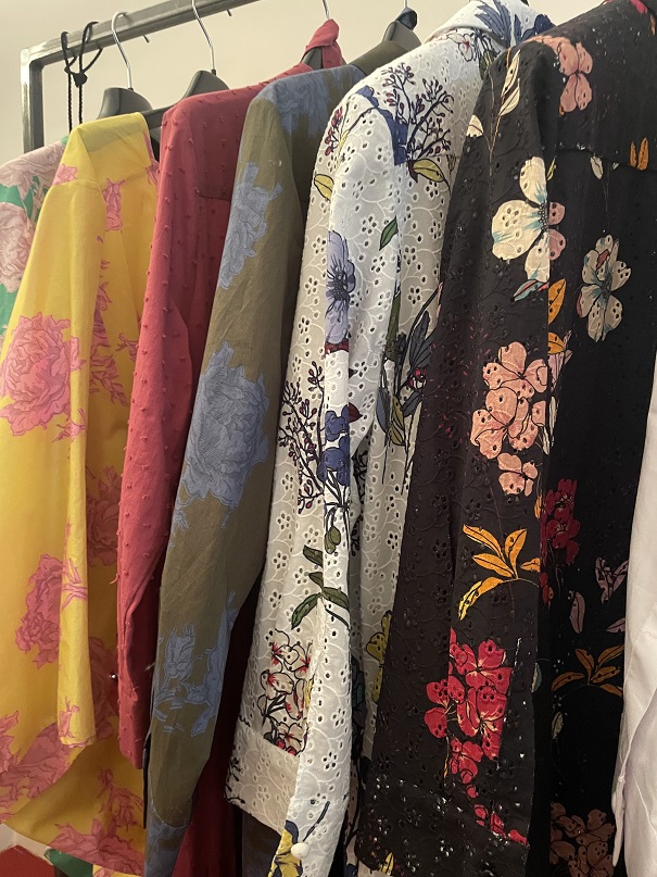 La raffinata palette cromatica si tinge di colori caldi e luminosi, che rimandano alla rinascita, figlia primigenia della bella stagione, affiancandosi alle stampe floreali e agli elementi geometrici. Cotone e pizzo sangallo fanno da contraltare a linee pulite, definendo capi che donano una ricercata semplicità alla collezione.