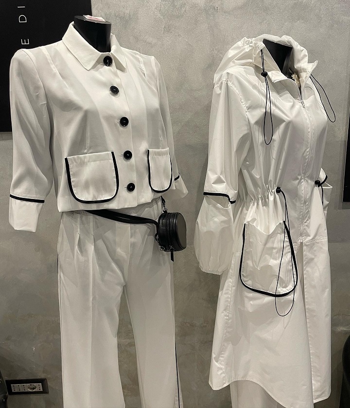 “In principio era tutto in bianco e nero”. Da questa citazione di Maureen O’Hara, prende spunto la collezione JAJO primavera-estate 2022. Impermeabili, giacche, abiti, felpe, pantaloni e bluse realizzati in questo dualismo acromatico, che cattura l’anima dei capi.