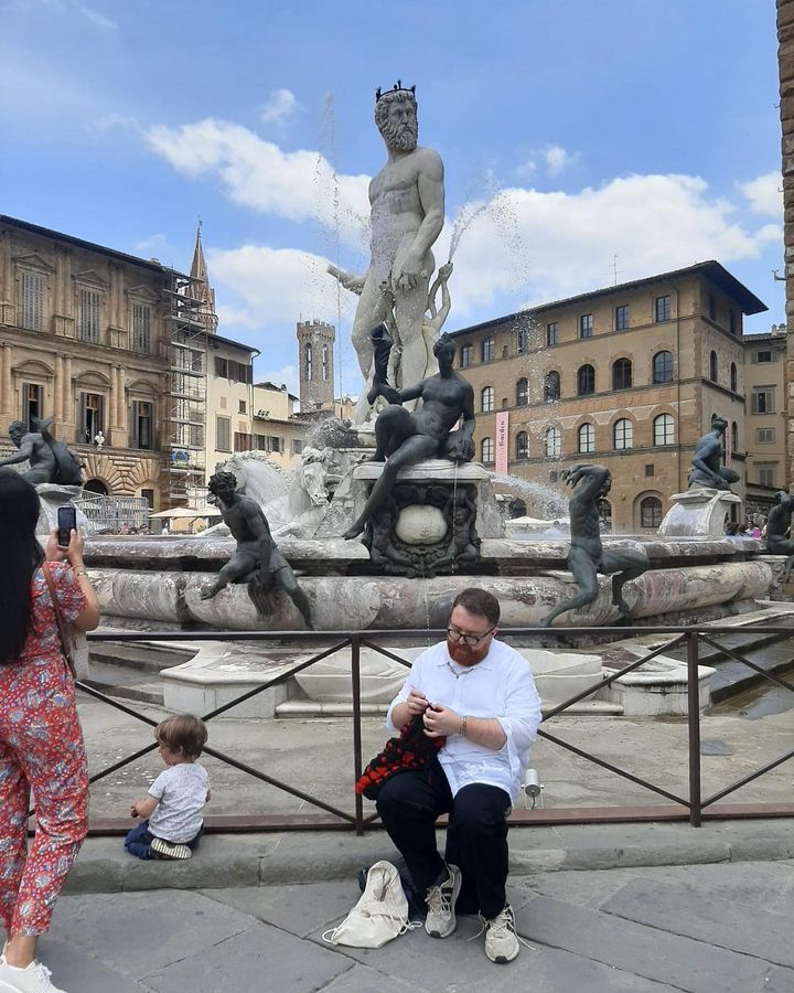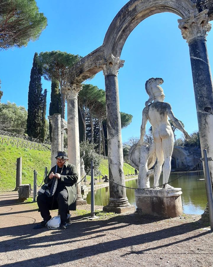 Conosco Italo Marseglia da alcuni anni e la sua creatività non si ferma mai. Neanche con la pandemia, la diminuzione delle risorse ed i problemi del mercato della moda si è fermato. Anzi è stata un’occasione per sdoganare ricordi e tecniche apprese sin da bambino con la nonna Lidia. Le sue mani CHIATTULELLE sono sempre in azione e lo abbiamo visto sulle piazze ed accanto ad i più importanti monumenti di Roma, da Piazza Navona, a Piazza del Popolo a Cinecittà fino a Piazza della Signoria a Firenze, a Milano e le sue creazioni anche al Castello di Miramare a Trieste. Un “uncinetto tour” che dovete assolutamente seguire sui social che vi stupirà ed incuriosirà sempre più, Infatti non è solo moda, ma di un modo per fare squadra infatti i filati con cui il designer realizza i suoi capi arrivano dal “crowfunding” attivato proprio dai canali social attraverso la mutua volontà di sostenere un progetto creativo che non avrebbe avuto modo di esistere.
