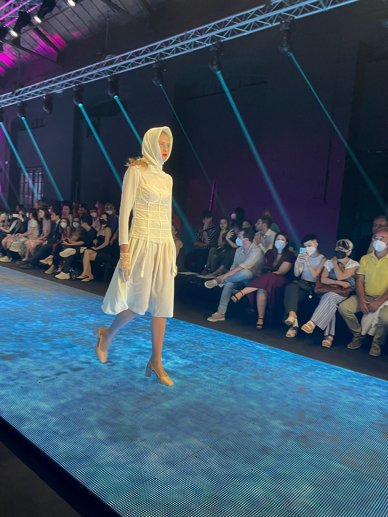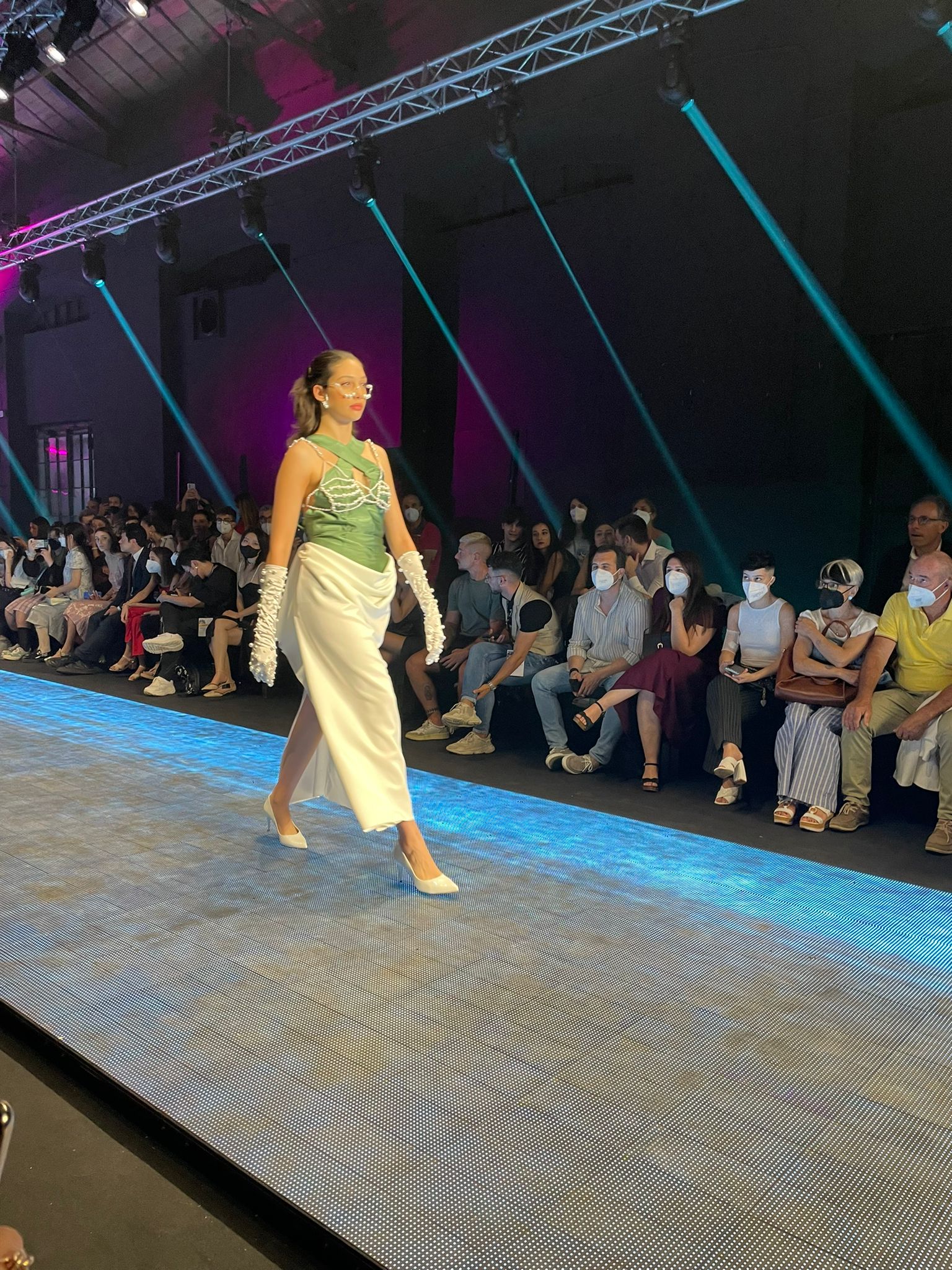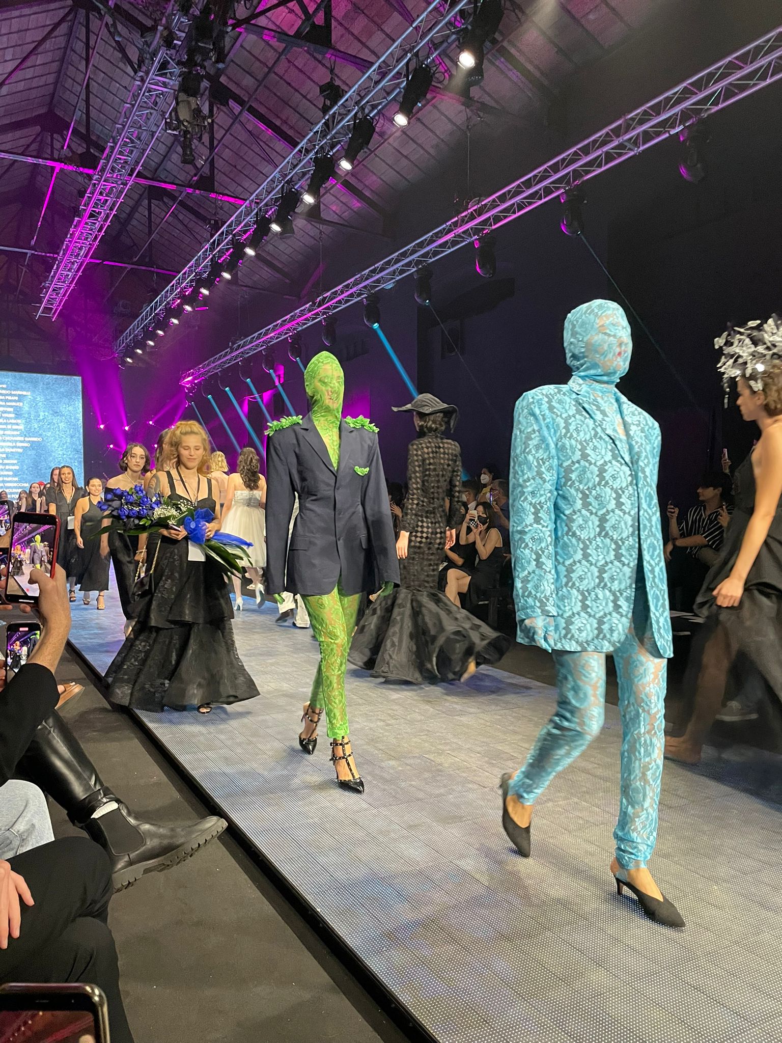 …così si legge nell’invito e questa sera onorata del posto in prima fila e del flûte di prosecco in apertura ho assistito insieme a Michela de La Stanza di Michela ad una sfilata davvero ricca di particolari retrò e senza tempo. Guanti, cappelli, tulle, perle, macramè, ma anche materiali plastici. Avrei indossato quasi tutti i pezzi proposti ed auguro ad ognuno dei ragazzi di rivederli già dal prossimo anno sulla passerella con la loro prima collezione!