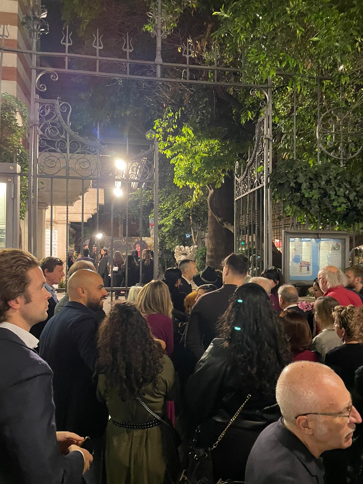 una parte della facciata dell’antica Chiesa e gli ospiti al loro arrivo