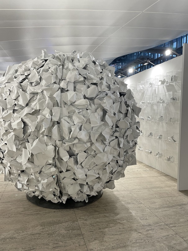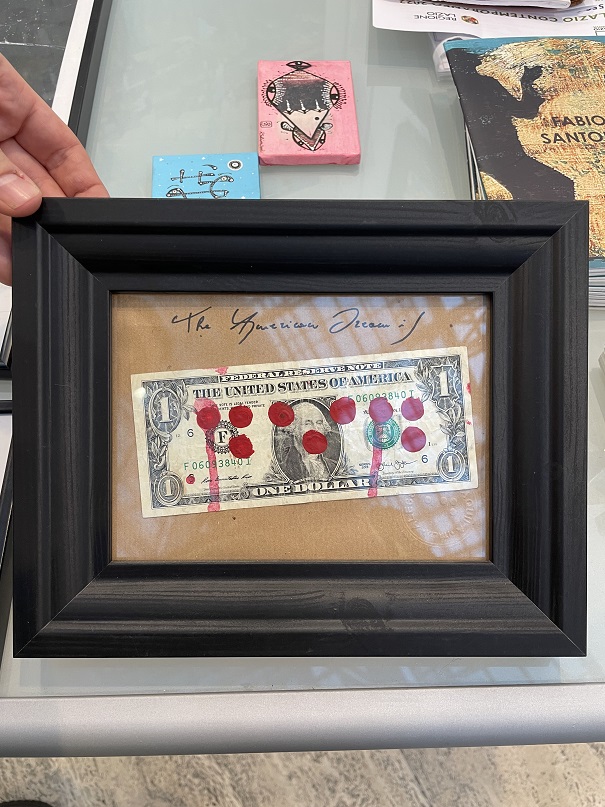 Al primo piano una variegata proposta, che rappresenterà molto probabilmente l’arte di domani, con interessanti linguaggi espressivi come lo stand H 22 “il negozio del niente” completamente bianco al suo interno con solo la scritta “Che cosa desidera?” L’ho trovato davvero geniale poiché lascia spazio alla fantasia. O Mancaspazio in cui sembra di entrare in un mondo incantato con opere curatissime in ogni dettaglio di misure minuscole.