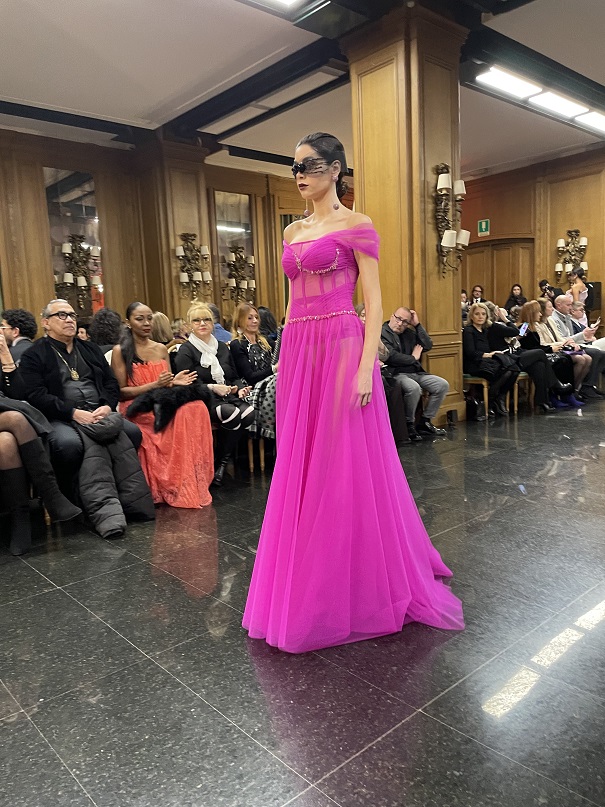 Applausi ad ogni uscita perché ogni capo era una sorpresa ed una emozione. In barba alla Fashion Week parigina appena conclusa ecco che a Roma abbiamo visto davvero l’Haute Couture più sincera in cui non c’è il solo bisogno di stupire, ma la passione e la vera artigianalità. Per ognuno delle ventinove creazioni presentate ammirazione, applausi e sogni ad occhi aperti. Parlando con amiche nel post sfilata questi i commenti: