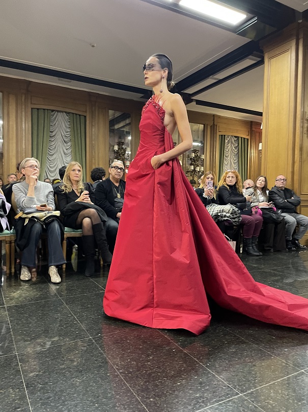 Un’idea di femminilità e di eleganza senza tempo sottolineata dalla manifattura artigianale che caratterizza il lavoro accurato di Gian Paolo. Rosso, bianco e nero sono stati i colori dominanti, ma anche il verde lime ed il magenta sono stati davvero interessanti ad arricchire tutta la collezione i ricchi ricami ad impreziosire polsini, colletti e dettagli.