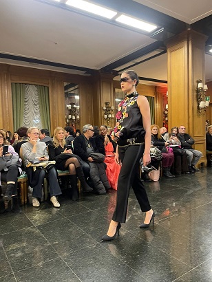 Ho incontrato Gian Paolo un’ora prima della sfilata. Era tranquillo, mi ha illustrato la location davvero strepitosa: il Circolo degli Ufficiali dell’Esercito Pio IX in Viale Castro Pretorio a Roma, e raccontato alcuni aneddoti del dietro “le quinte” tra cui il permesso speciale ricevuto per Sansone, il suo amato cagnolino, che poi abbiamo visto sfilare in passerella rigorosamente al guinzaglio di una elegantissima modella.