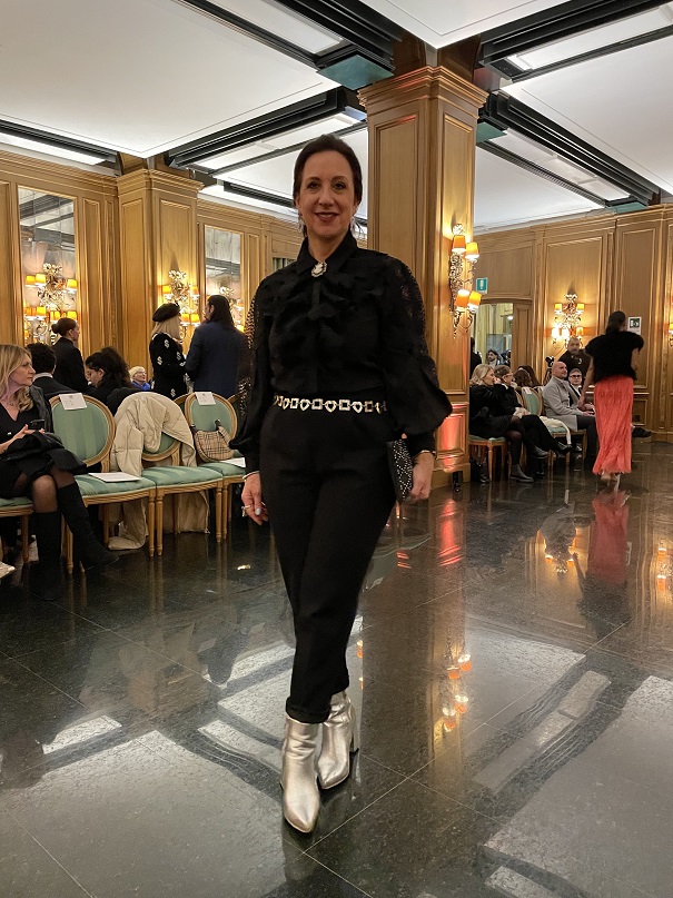 Il mio look da sfilata è stato ispirato a Mercoledì Addams che sta spopolando in rete per cui quando ho visto questa meravigliosa camicia non poteva essere che mia ed il cameo nero le dona quel tocco gotico interessante non trovate?