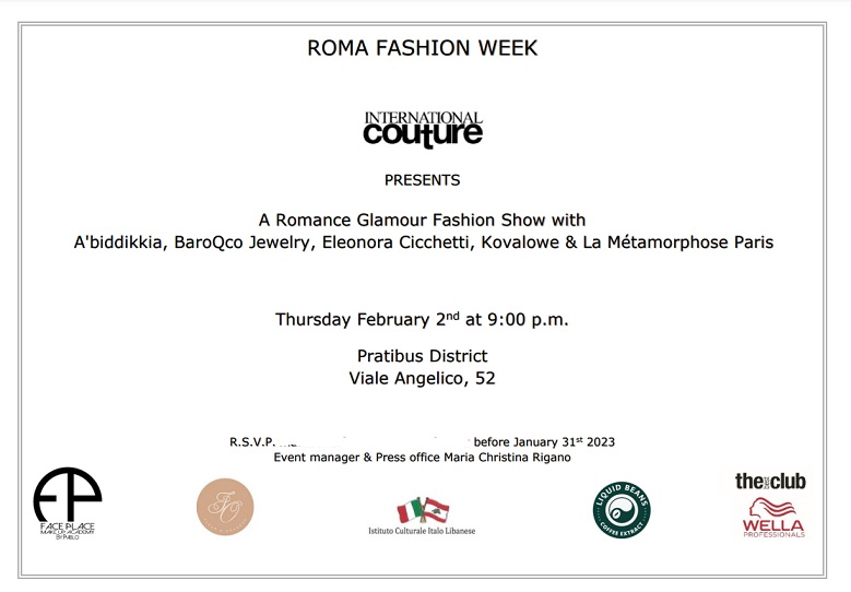 Si è conclusa giovedì 2 febbraio l’edizione invernale di AltaRoma 2023 con una incredibile partecipazione alla fantastica passerella organizzata da International couture presso il Pratibus District in Viale Angelico.