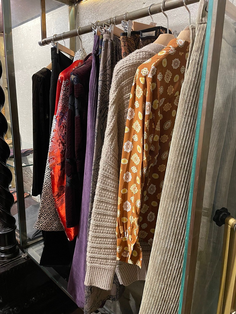 Qui anche l’arredamento, se vi piace, può essere acquistato e dietro un meraviglioso paravento potete provare la nuova collezione “Le gallinelle” capi davvero speciali composti di tessuti vintage pregiati elegantemente creati dalla titolare che è inutile dirlo: dovete assolutamente conoscere!