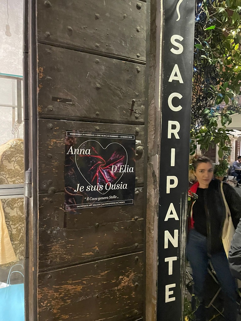 Anna D’Elia ci ha sbalordito al vernissage della sua mostra “Je Suis Ousi” con la potenza ed i colori delle sue opere in una location che già da sola è un’opera d’arte!