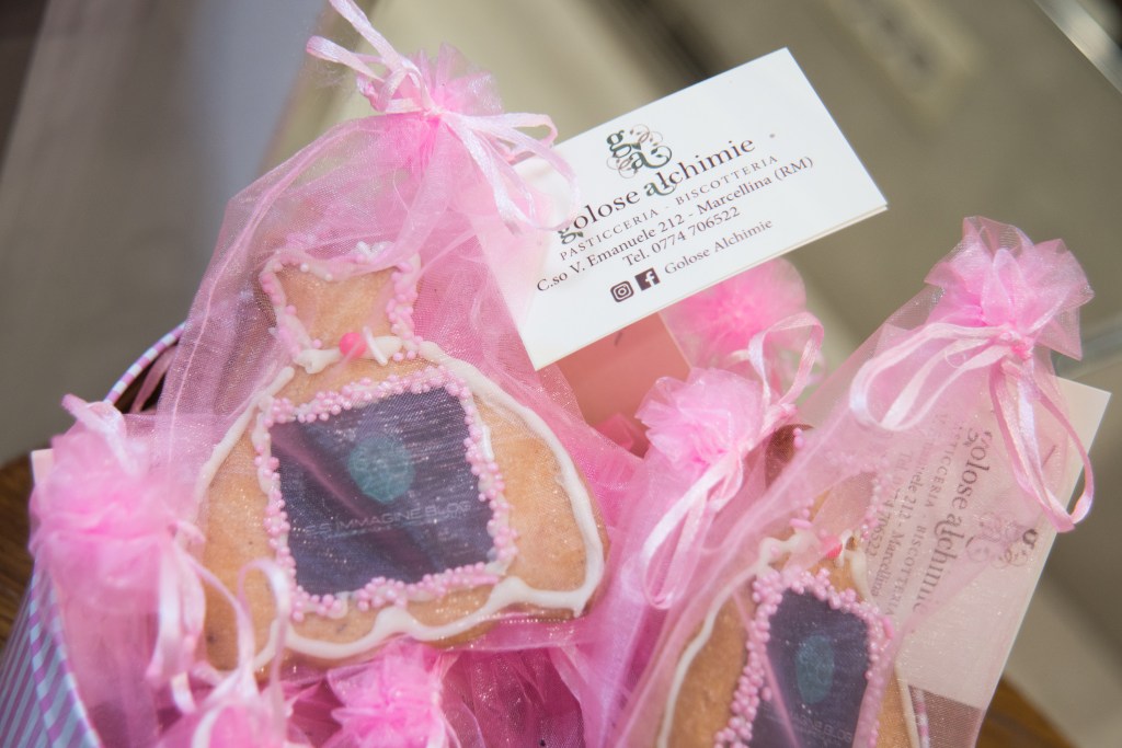 Tra le sorprese del pomeriggio anche un gradito regalo per tutte le ospiti un biscottone salato, sempre logato, a forma di vestito in un delizioso sacchettino rosa.