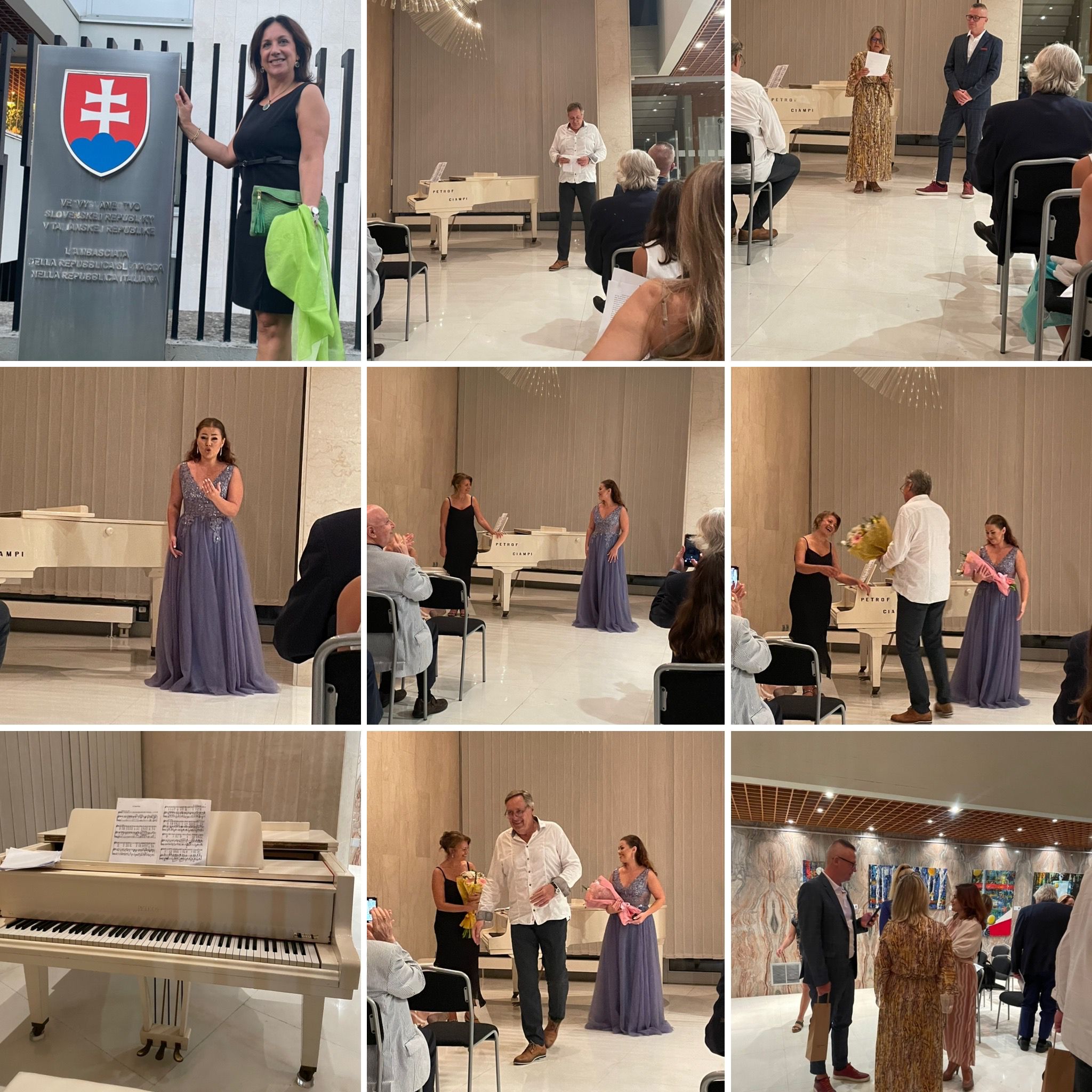 L´esibizione musicaleci ha lasciati tutti senza fiato per le capacità tecniche e l’interpretazione della giovane soprano Saskia Žihalová che sebbene stia attualmente studiando all’Accademia delle Arti di Bratislava si preannuncia per lei un grande futuro, ne sono certa! E’ stata accompagnata da Catia Capua che avevo già avuto modo di apprezzare in un altro recente evento. Pianista di fama internazionale ha suonato con importanti orchestre e compositori per citare solo alcuni nomi Uto Ughi, Ennio Moricone, Amii Steward…