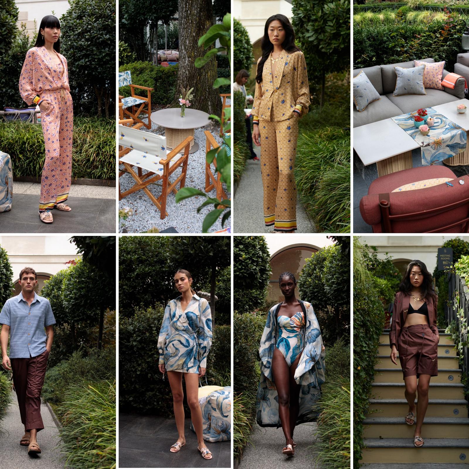 I pattern e le silhouette della collezione PE24 si ispirano a questo complesso mondo, tanto caro alla contessa. La nuova stagione – che mixa con disinvoltura outfit contemporanei e urbani con altri che si distinguono per l’eleganza “lacustre e d’antan” – sono firmati dalla designer Eszter Füzes.