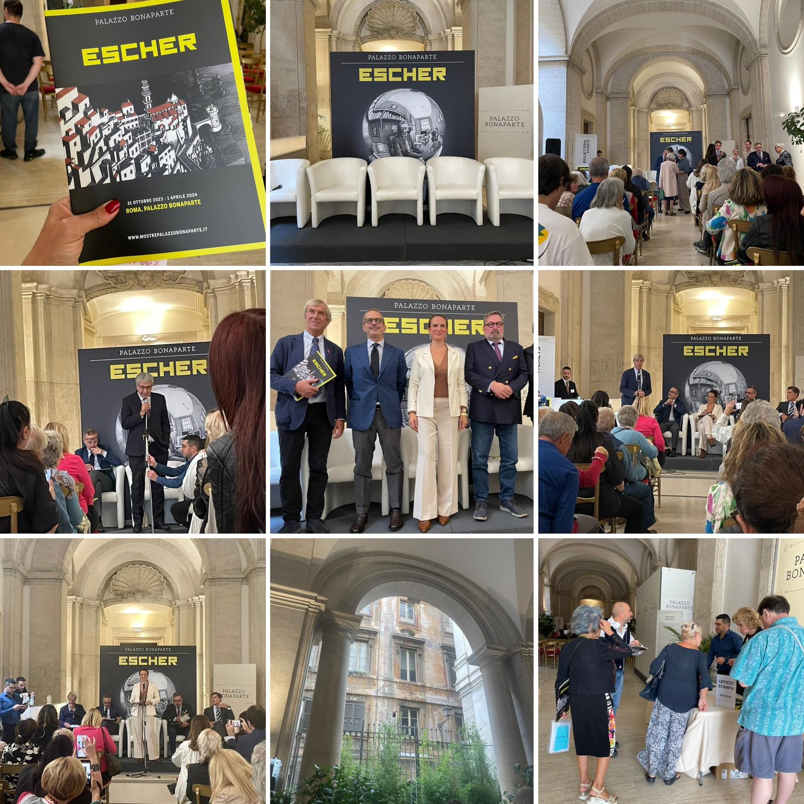 “Questa mostra è interamente dedicata alla tecnica, alla bellezza, alle illusioni e ai sogni di uno tra i più celebri artisti grafici del mondo. Xilografie, xilografie di testa, litografie, linoleografie e mezzetinte: tutto quello che vedrete è stato realizzato a mano dall’artista, poiché all’epoca di Escher i computer non esistevano. Queste stampe sono la testimonianza della passione di una vita, e ancora oggi procurano immensa gioia a chi le osserva!” queste le parole di Mark Veldhuysen Presidente M.C.Escher Foundation in conferenza stampa questa mattina a Roma nel favoloso Palazzo Bonaparte a Piazza Venezia.