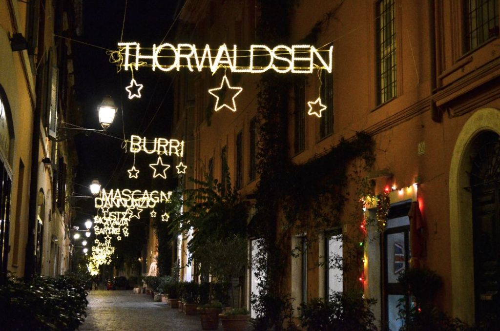 Picasso, Guttuso, De Chirico, D’Annunzio, Moravia, Sartre, Puccini, Mascagni, Wagner, Fellini, Magnani, K. Hepburn e G. Peck e tante altre bellissime anime che hanno popolato questa strada unica e ineguagliabile, rivivranno nelle scritte di tre metri realizzate con tubi al neon color oro, collocate per tutta la lunghezza di Via Margutta, impreziosite e decorate da luminose stelle natalizie.