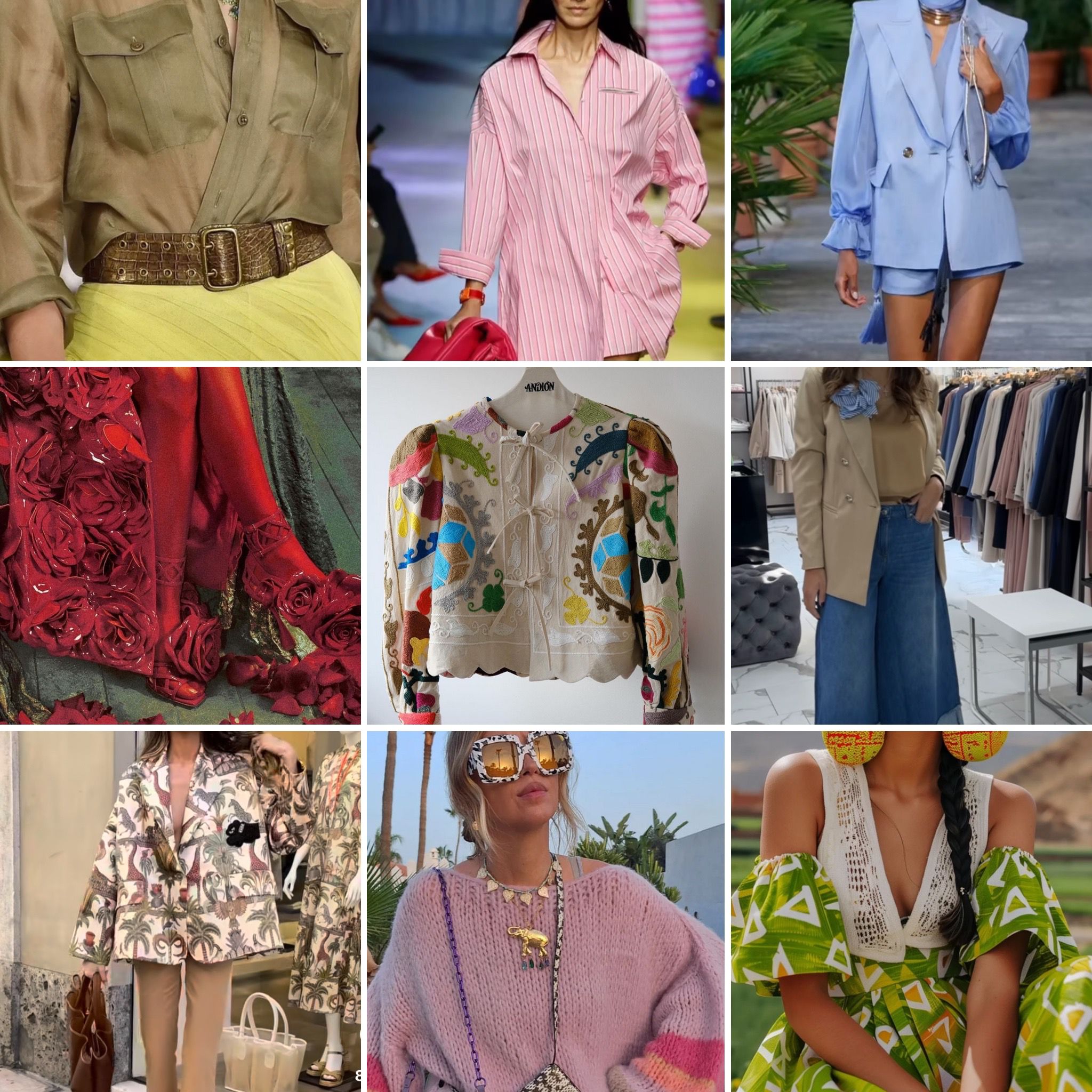 7. Accessori Statement: Gli accessori diventano il punto focale dei look primaverili, con borse oversize, occhiali da sole audaci, gioielli vistosi e scarpe eccentriche che completano e arricchiscono gli outfit.