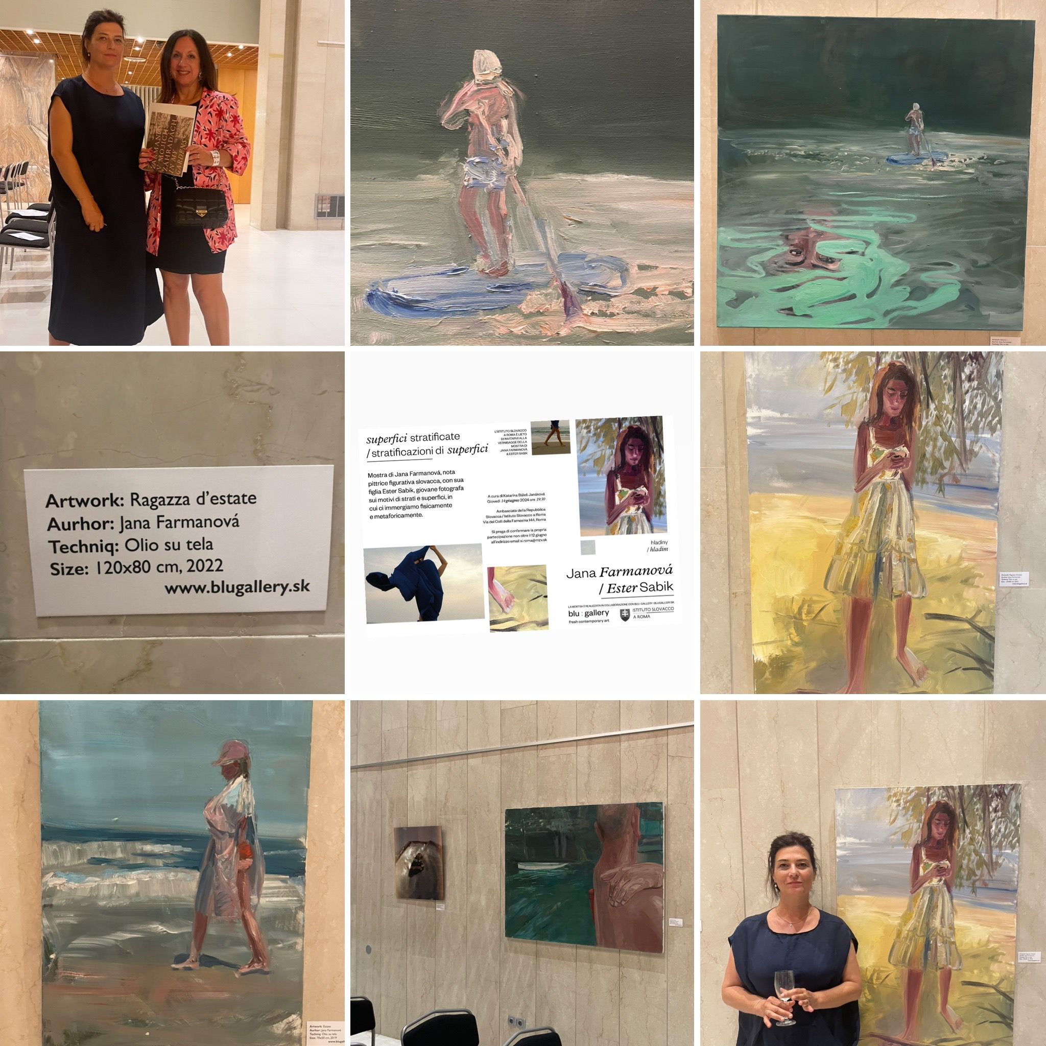 Contemporaneamente al sottofondo musicale nell’ambiente è stato allestita la mostra Superfici stratificate/stratificazioni di superfici di Jana Farmanova, nota pittrice figurativa, e di sua figlia Ester Sabik, giovane fotografa. Sui motivi di strati e superfici ci immergiamo sia fisicamente che metaforicamente: non si può non essere coinvolti dalle opere tutte dotate di notevole profondità.