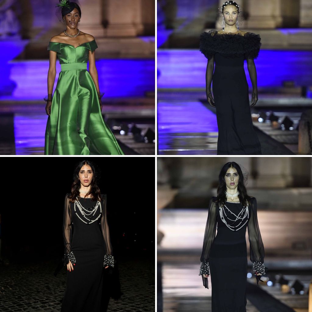Per la prima volta il talentuoso designer, da sempre punto di riferimento indiscusso nel settore bridal, ha mostrato al pubblico gli abiti da sera e lo ha fatto nella Capitale dove da anni è di casa grazie al suo centrale atelier di Via del Babuino. Patty Pravo ha impreziosito l’evento interpretando i suoi iconici brani. Le apprezzate proposte sono ideate per una donna sofisticata, mentalmente matura che incede con naturalezza tra le stanze dei palazzi nobiliari, ma anche alle prime teatrali e alle serate di gala. Non a caso in passerella ad interpretare le creazioni è stata la splendida ed eterea principessa Giacinta Ruspoli. In questa nuova collezione Spring/Summer 2025 l’ispirazione proviene da due donne forti e di carattere. La prima è Tamara de Lempicka, pittrice polacca ed icona femminile della Parigi Anni Venti che ha rappresentato meglio di chiunque altro tutta l’atmosfera Belle Epoque e la trasgressione. Dalida è l’altra musa dello stilista, una donna che conquistò il mondo grazie al suo fascino e alle sue doti canore ed espressive. Battimani per i long dress ricercati in cui il mikado fascia la silhouette con pizzi chantilly a contrasto, ma anche abiti in satin morbidi sia in tinta unita che in stampe bianche e nere disegnate dallo stesso couturier. La palette cromatica predominante è quella dei bianchi e dei neri coadiuvati dal verde smeraldo e dal ciclamino. Fil rouge della collezione Noble Vanité è la perla che predomina nelle stampe, nei ricami, nelle acconciature e sui polsi delle suggestive creazioni. Per Gianni Molaro la perla rappresenta uno dei gioielli più raffinati, molto più dei diamanti o degli smeraldi. “La mia donna rappresenta una femminilità emancipata che vuole apparire in un modo interessante, è una donna padrona di sé stessa.”- chiosa il designer. In Noble Vanité c’è grande enfasi sui dettagli e sugli accessori. Gli abiti infatti sono impreziositi da velette e da piume, queste ultime elemento cardine dell’haute couture. La piuma rappresenta il vezzo, la vanità del corpo. Compaiono stole e cinture dai grandi volumi, petali e fiori di organza che creano strutture sulle spalle adagiati in maniera asimmetrica. La stola con pieghe, indossata come una cintura, crea volume tra la spalla e il punto vita. Gli spacchi sono surreali, le scollature e le trasparenze perfettamente inserite, è un’eleganza sussurrata. “Io che vengo dalla sposa, in questa collezione, ho fatto un enorme lavoro di sottrazione. Il mio intento rimane sempre quello di vestire qualsiasi fisicità e donne di carattere.”- dichiara lo stilista. Nel parterre di Molaro si riconoscevano la Principessa Maria Pia Ruspoli, il Principe Guglielmo Giovanelli, le attrici Raffaella Paleari, Giorgia Fiori, Carla Cogliandro e Fabiola Morabito, lo stilista e astrologo Massimo Bomba ed il pittore Amedeo Brogli. L’hairstyling della sfilata è stato curato magistralmente dal Maestro Sergio Valente, il make-up dal talentuoso Simone Belli.