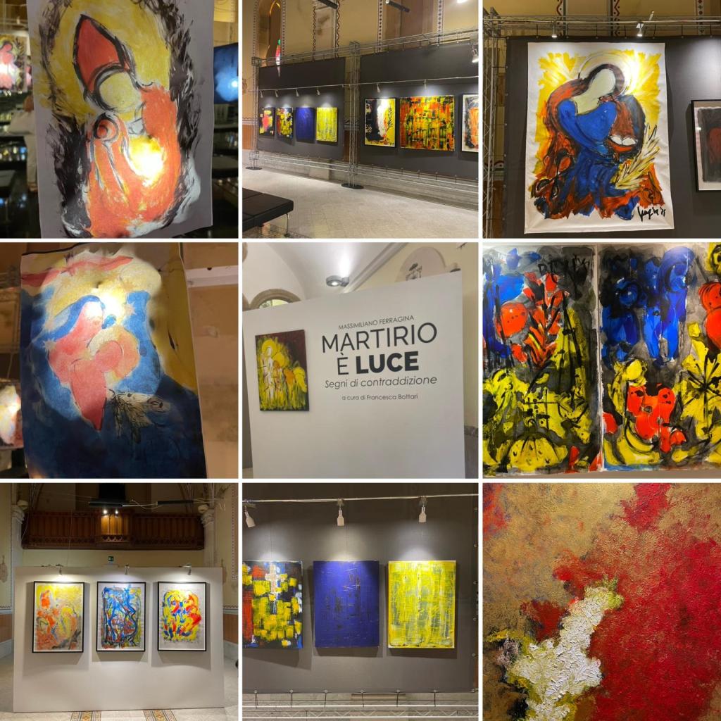 Fino a settembre sarà possibile visitare la Mostra “Martirio è luce/ Segni di contrapposizione” del Maestro Massimiliano Ferragina. Un caro amico al quale mi lega un’intesa spirituale unica che espone una treantina di opere e due postazioni per una visita immersiva fatta di luci e specchi.