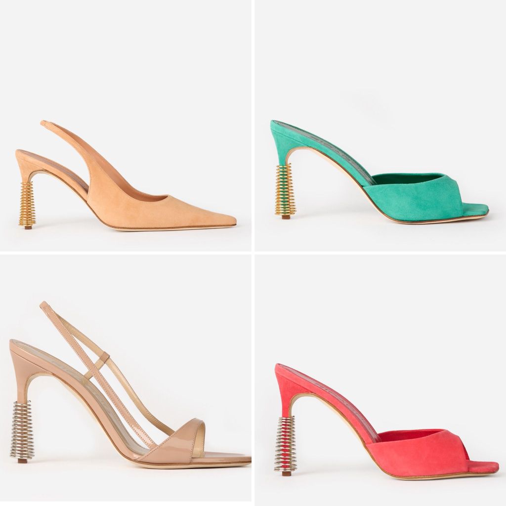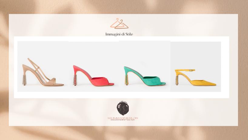 I modelli in suede richiamano la morbidezza della terra, mentre i sandali in vernice catturano la lucentezza delle superfici bagnate dalla rugiada del mattino. I sabot a punta e le ciabattine in raso di seta riproducono la delicatezza dei petali dei fiori appena sbocciati. Tutto si declina attraverso una tavolozza cromatica che richiama gli elementi naturali: il turchese delle acque del mare che incarna forza e libertà, il corallo che esplode con la sua vitalità e il giallo radioso, una chiara evocazione dei campi di girasole, simbolo di calore e luce.