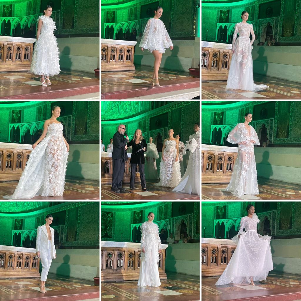 Gran finale della sfilata con l’Alta Moda Sposa di Nino Lettieri, creazioni sartoriali contemporanee che reinterpretano il concetto di abito da sposa, giocando con tessuti pregiati, ricami preziosi, applicazioni floreali e abbellimenti in perline. Abiti eterei di raffinata eleganza sobri e singolari senza togliere curiosità ad una sensualità mai volgare ed eccessiva.