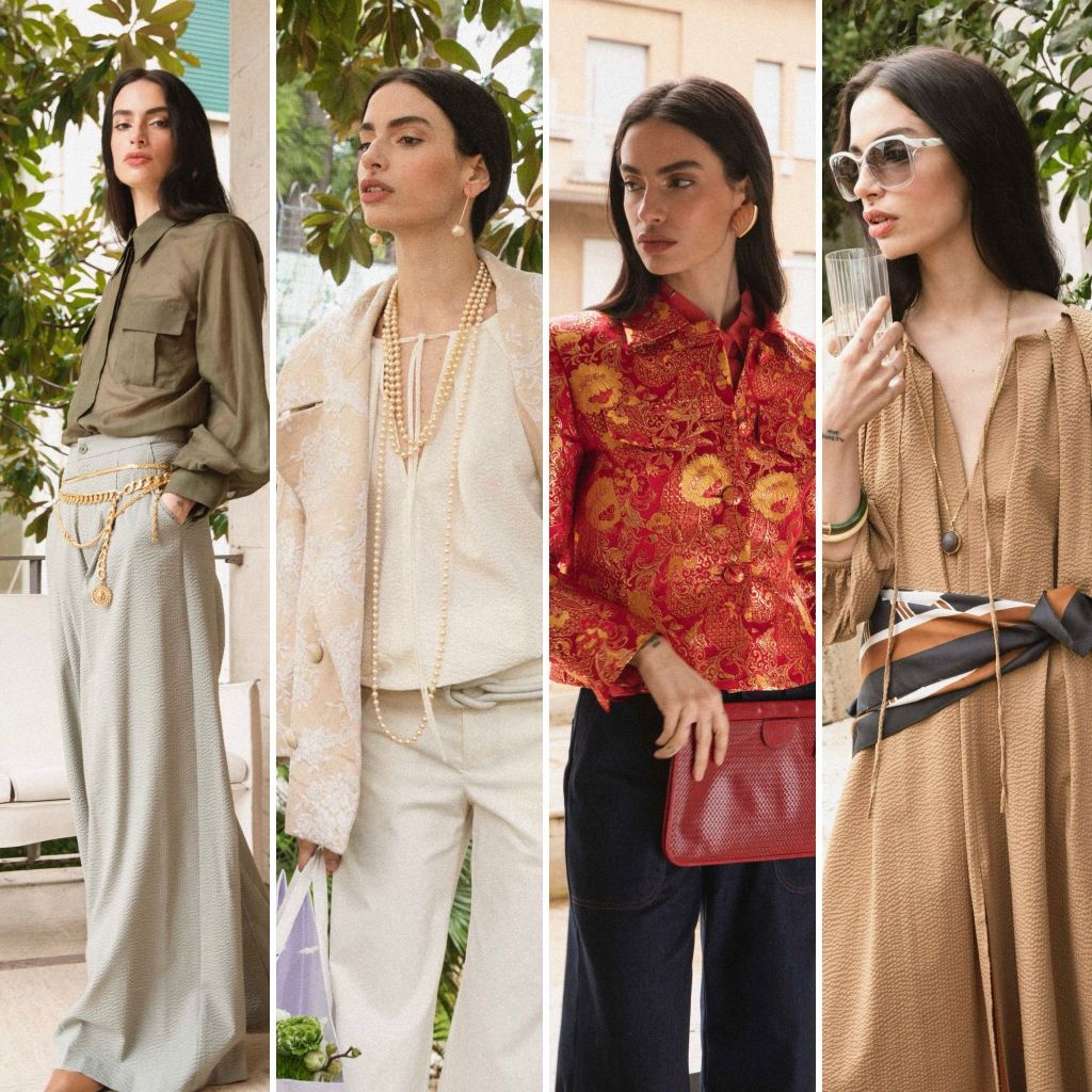 La donna Morfosis è sofisticata, sicura e indipendente, capace di esprimere la propria personalità con naturale eleganza. I colori spaziano dai toni della terra alle combinazioni in bianco e nero, con stampe animalier, onde, fiori e graffiti pop. I tessuti sono leggeri e ariosi, con giochi di lucido-opaco nelle lavorazioni fil coupé, jacquard bicolore e tulle arricchito di lurex. Le silhouette alternano volumi fluidi e morbidi a strutture più definite: pantaloni ampi, camicie oversize, blazer doppiopetto, gonne drappeggiate e bustier, fino agli abiti lunghi e alle giacche jacquard dal fascino senza tempo. L’equilibrio tra comfort e raffinatezza crea un’eleganza naturale, con tocchi freschi ed eclettici. Ogni pezzo è prodotto artigianalmente in Italia, in edizione limitata, nel rispetto della sostenibilità e della tradizione sartoriale, confermando l’impegno di Morfosis verso un lusso consapevole e senza tempo.
