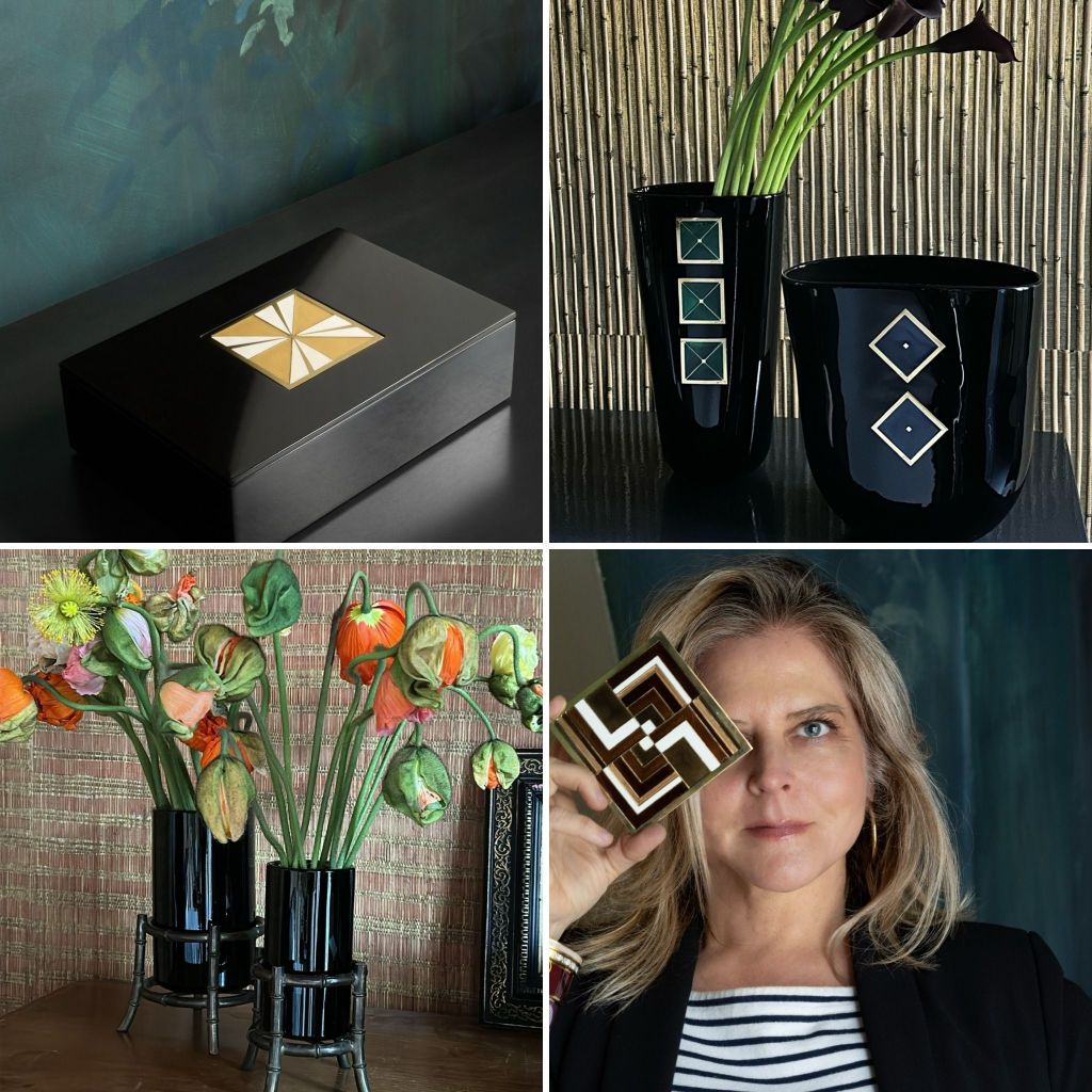 Cache-Pot Bambù, disponibili in due misure, nascono come un “giardino immaginario”, dove le forme organiche del bronzo fuso a terra, realizzato in una storica fonderia lombarda, abbracciano eleganti cilindri in vetro nero soffiato a Murano. Un dialogo perfetto tra due pratiche artigianali di lunga tradizione. La capsule di Vasi Cloisonné, realizzata in una storica fornace di Murano, esplora l’incontro tra la profondità del vetro nero soffiato e la brillantezza dello smalto cloisonné applicato su ottone. Un gioco di lucentezze che richiama suggestioni Art Déco e atmosfere anni ’80, reinterpretate in chiave contemporanea.