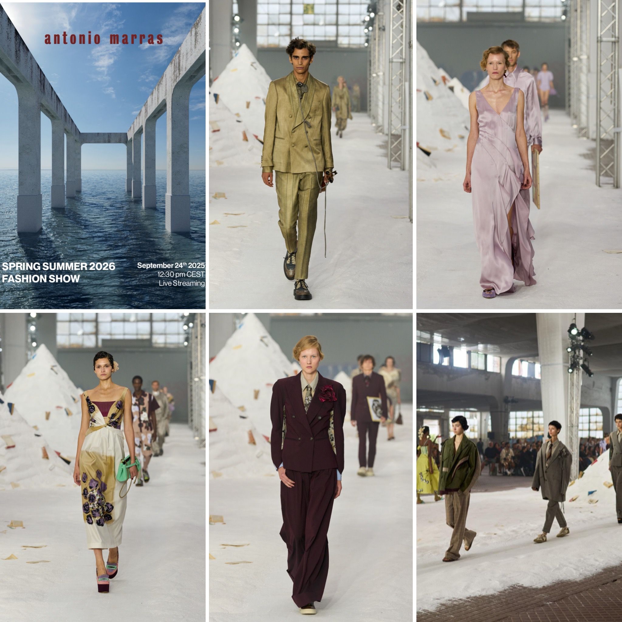 La sfilata Antonio Marras Primavera Estate 2026 è un viaggio che intreccia letteratura, arte e moda, ispirato al soggiorno sardo di D.H. Lawrence e al fascino di Alghero nei primi anni del “900. In realtà Kawrence che soggiornò in Sardegna 9 giorni visitò molti luoghi, ma non Alghero ed è così che Antonio Marras mette mano alla storia e ne aggiunge un pezzetto. La collezione esprime questo racconto con linee fluide e androgine, una tavolozza di colori delicati e tessuti preziosi come jacquard, pizzo e pelle, arricchiti da ricami e patchwork. Sono inseriti anche costumi della tradizione sarda che secondo l’autore non possono essere dimenticati e che lui ha reso ancora più meravigliosi.