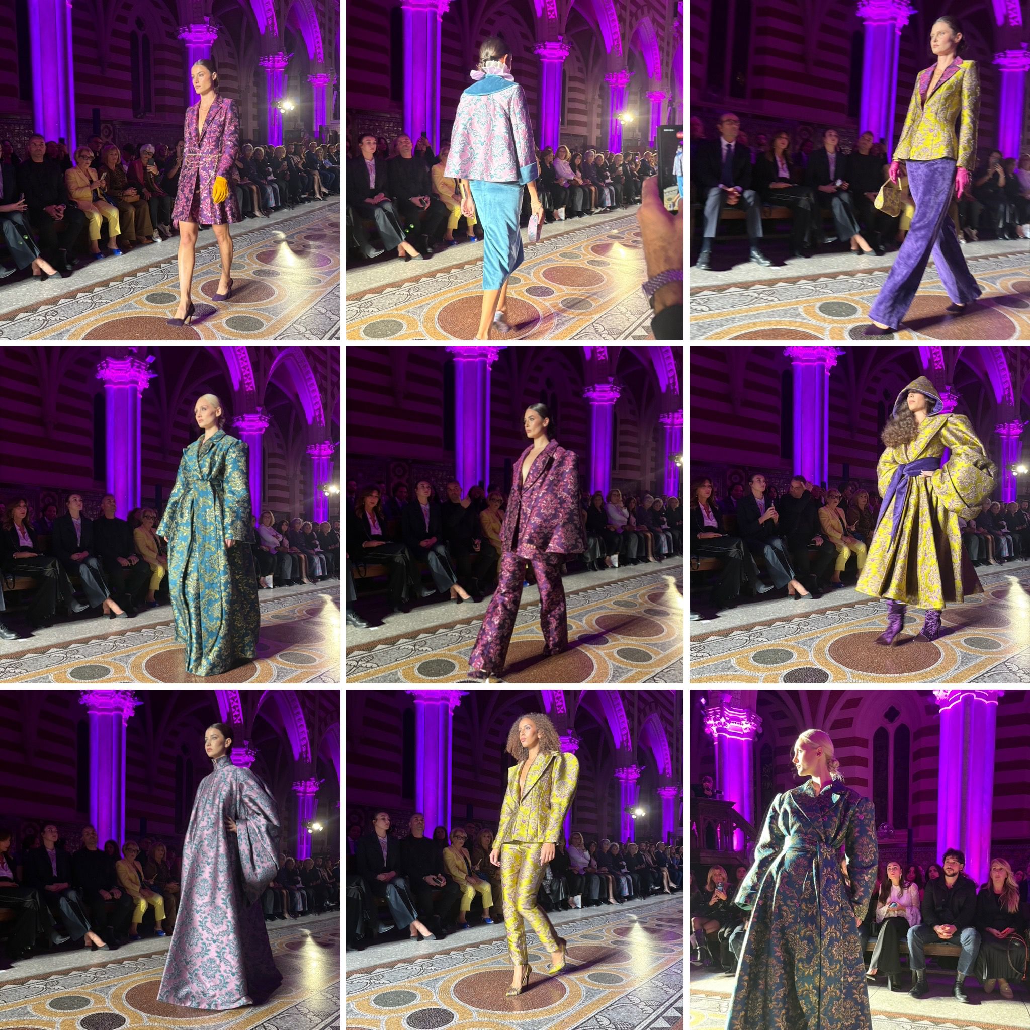 Ho particolarmente apprezzato il primo quadro moda in passerella quello dei Giovani Talenti dell’Accademia SITAM Lecce, le loro creazioni hanno proposto un’anticipazione delle tendenze future mostrando con la “Power Suit Collection – Il tailleur e la sua evoluzione” l’abilità e la creatività delle nuove generazioni. L’unicità della collezione è data dai tessuti, proposti dagli allievi che, scegliendo una fantasia broccata per un tocco retrò, hanno poi deciso di intrecciare diversi filati dai colori Pop, per un risultato super moderno e di tendenza! Ogni creazione ideata per celebrare l’artigianalità, la ricerca e la passione, elementi che da sempre definiscono l’eccellenza della moda e dei mestieri italiani. Adoro da sempre il tailleur ed in questa versione mi ha rapito…che dire poi delle scarpe rivestite in broccato? Da rubare subito! P.S. Vi avanza un 40 per caso?