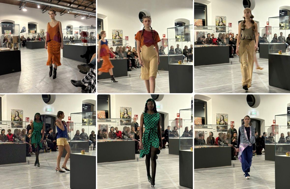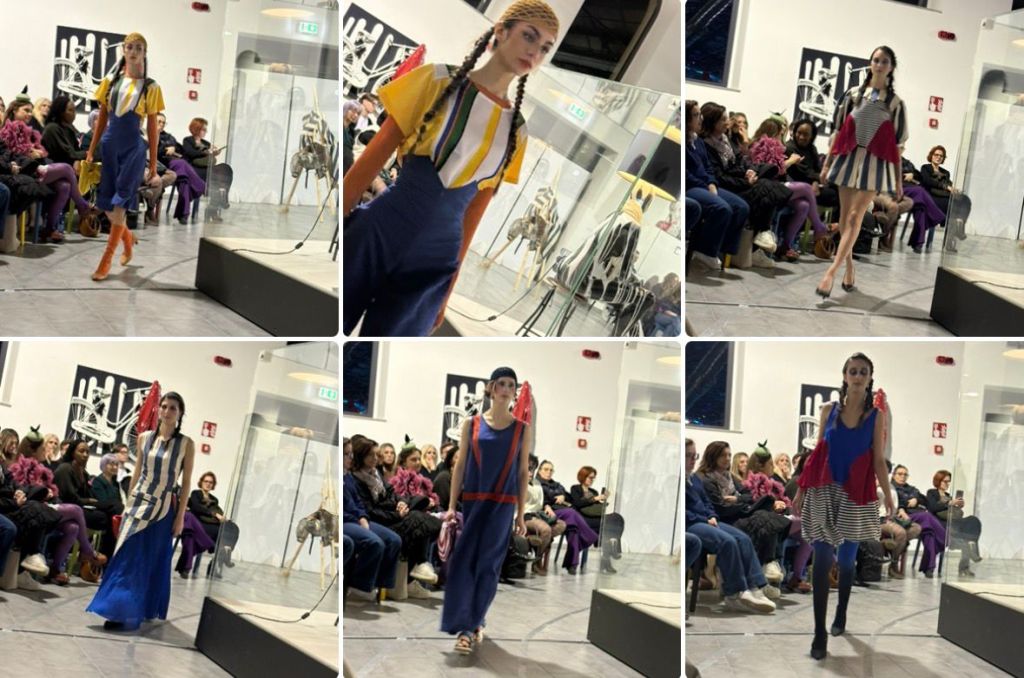 Una parola che risuona nella mia mente bellissima. Lentamente. Che questi giovani abbiano capito tutto? Noi adulti ci stiamo dimenticando di godere delle cose? Dobbiamo rallentare per goderci ciò che ci circonda questo è il messaggio. Riesco a coglierlo e farlo mio per tutta la serata. E’ una serata di festa, di traguardi, di condivisioni. Insieme Carnevale e Circo. In passerella non ci sono solo abiti ed accessori, ma un Cerchio condiviso. La passerella non avviene su una linea retta, ma attraverso linee curve, sinuose tra le sedute degli ospiti. Anche la moda è circolare specialmente quella proposta da Isa. Il suo è progetto ambizioso e profondamente concettuale, confezionato dalla sartoria Frykowska, diretta da Rita Quinto. In passerella, i capi hanno mutato forma. Le modelle con pochi tocchi hanno cambiato look aggiungendo o togliendo dimostrando come un abito possa avere più vite e più significati rivelando nuove possibilità dell’essere Nei momenti tra uno spazio e l’altro abbiamo ammirato le performance degli acrobati del duo Circolante, che con fisicità, rischio e poesia, hanno amplificato la dimensione circense e simbolica della collezione coinvolgendo lo spettatore non solo visivamente ma anche emotivamente.